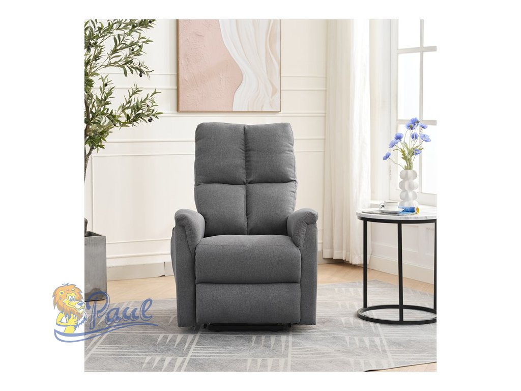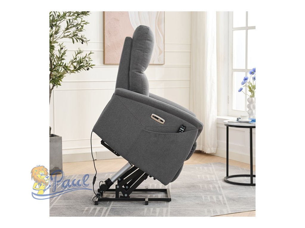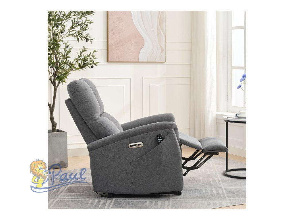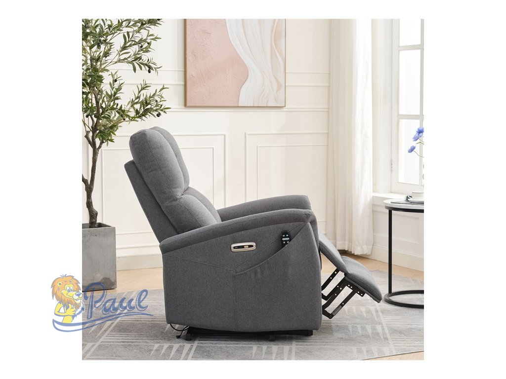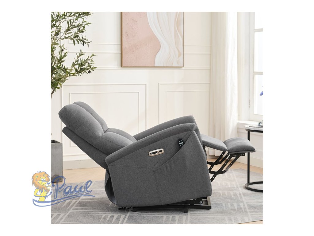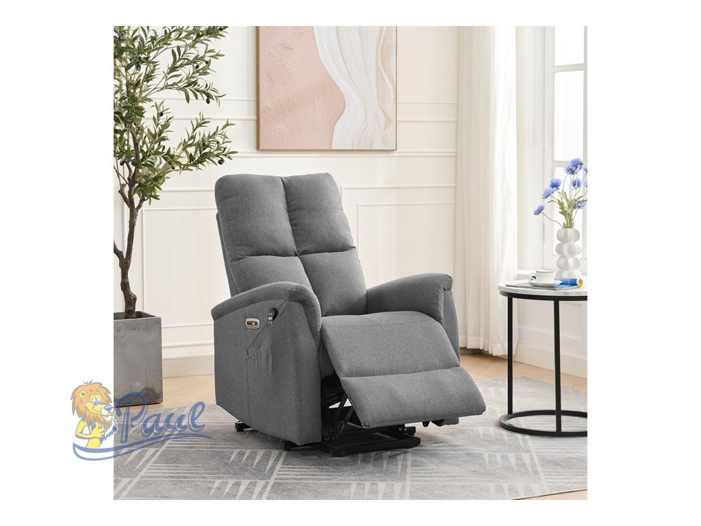 Objevte pohodlí a relaxaci s naším elektricky ovládaným relaxačním křeslem v moderní šedé barvě. Toto křeslo je navrženo tak, aby poskytovalo maximální komfort a zlepšilo váš domácí odpočinek. Ideální do obývacího pokoje, kde se stane vaším oblíbeným místem pro relaxaci. Klíčové vlastnosti: • Elektrické ovládání: Křeslo je vybaveno jedním motorem pro snadné a plynulé nastavování polohy opěradla a podnožky. • Výklopná funkce: Usnadňuje vstávání, což je ideální pro osoby s omezenou pohyblivostí. • Integrované ovládání s USB a USB-C: Panel umožňuje snadné nastavení křesla a nabíjení vašich elektronických zařízení přímo z křesla. • 8 bodová vibrační masáž: Strategicky rozmístěné body masáže poskytují maximální úlevu a uvolnění svalů. • Vyhřívání: Vyhřívací funkce je ideální pro chladnější dny a pomáhá zmírnit svalové napětí. • Kabelový ovladač: Snadno dostupný a intuitivní ovladač pro funkce masáže a vyhřívání. • Moderní design: Čalouněné měkkou a odolnou látkou v elegantní šedé barvě, která se hodí do jakéhokoli interiéru. Proč si vybrat naše elektrické relaxační křeslo? Naše elektricky ovládané relaxační křeslo je navrženo s ohledem na vaše pohodlí a zdraví. S funkcemi jako jsou vibrační masáž a vyhřívání, poskytuje úlevu od každodenního stresu a napětí. Integrované ovládání s USB porty je moderním doplňkem, který vám umožní zůstat připojení a nabíjet svá zařízení, aniž byste museli vstávat. Výklopná funkce je skvělá pro seniory nebo osoby s omezenou pohyblivostí, usnadňuje vstávání a zajišťuje bezpečnost. Zakupte si naše šedé elektrické relaxační křeslo ještě dnes a začněte si užívat luxusní pohodlí ve svém domově.Doplňkové parametry