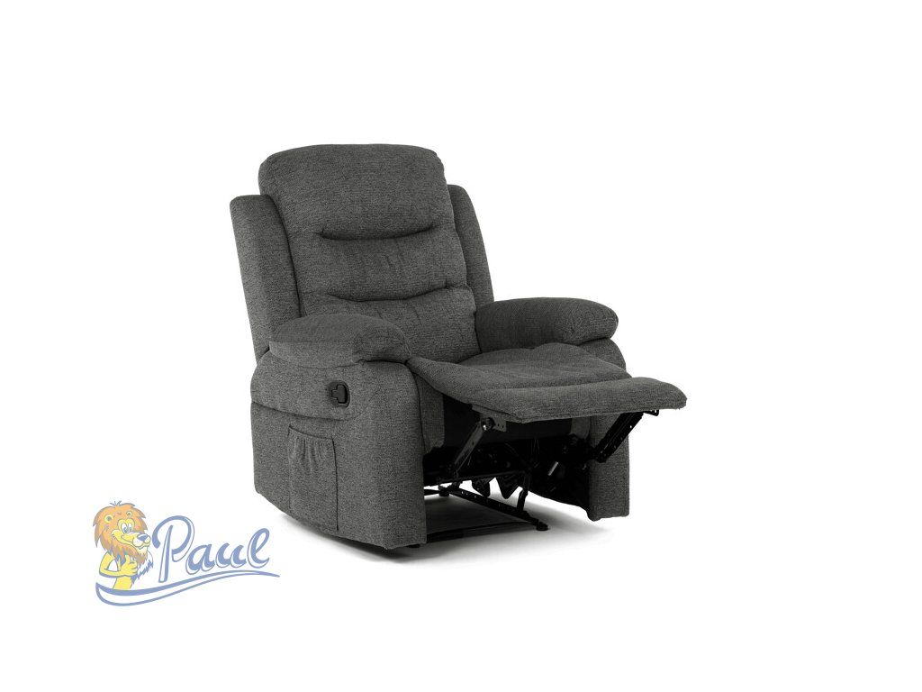 Polohovací křeslo s manuálním ovládáním je potažené šedou žinilkovou látkou, která nabízí příjemný a odolný povrch vhodný pro dlouhodobé užívání. Pevná kovová konstrukce nohou zajišťuje stabilitu a bezpečnost při sezení. Křeslo je vybaveno širokými čalouněnými područkami a designovým prošitím, které podtrhuje jeho moderní vzhled. Manuální mechanismus umožňuje snadné nastavení polohy opěradla a podnožky pro maximální komfort. Díky promyšlenému tvarování sedáku a opěradla poskytuje ergonomickou podporu tělu během odpočinku.Doplňkové parametry