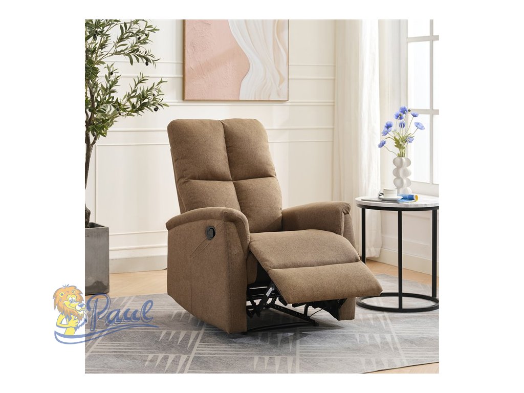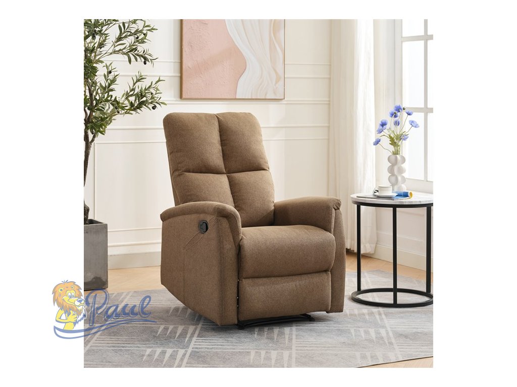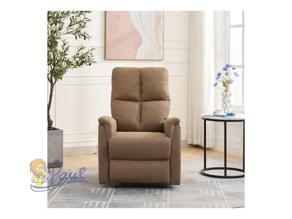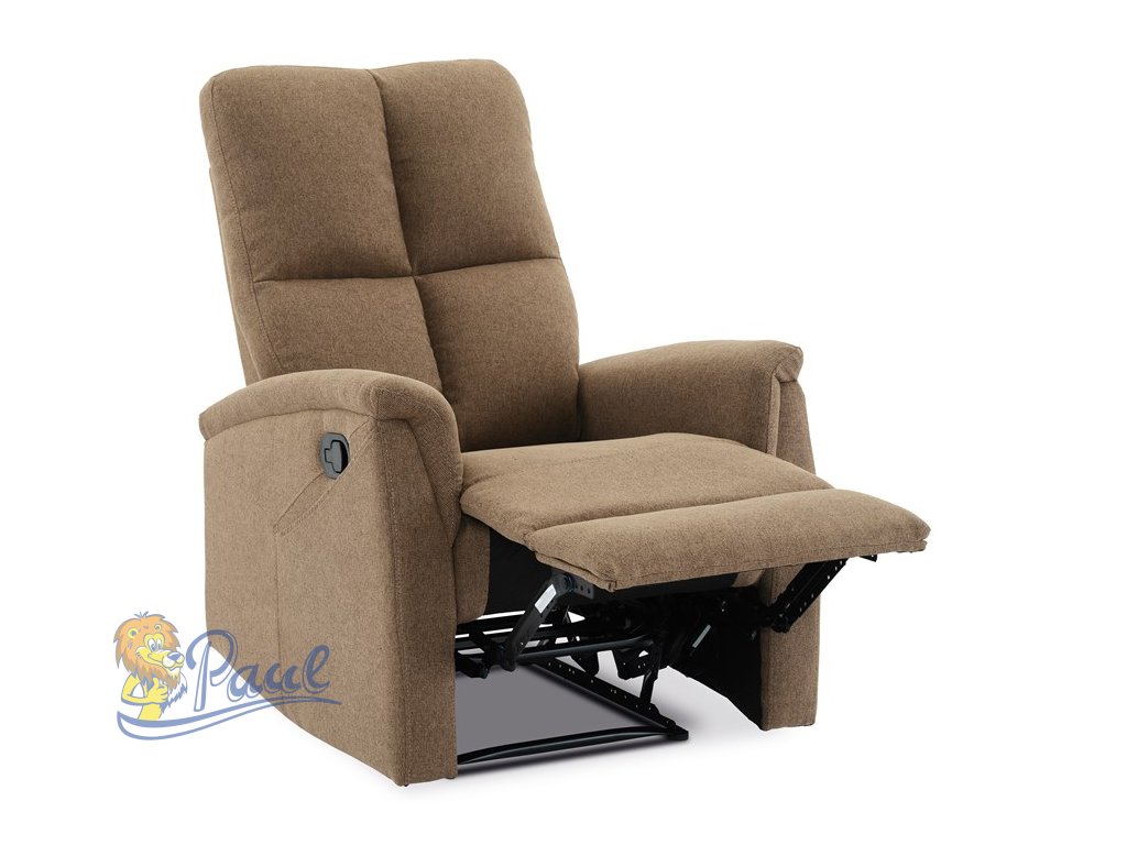 Relaxační křeslo, manuální ovládání, hnědá látka