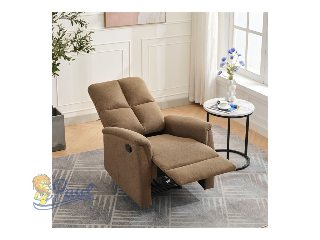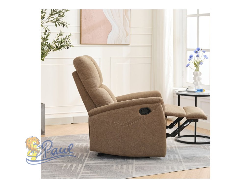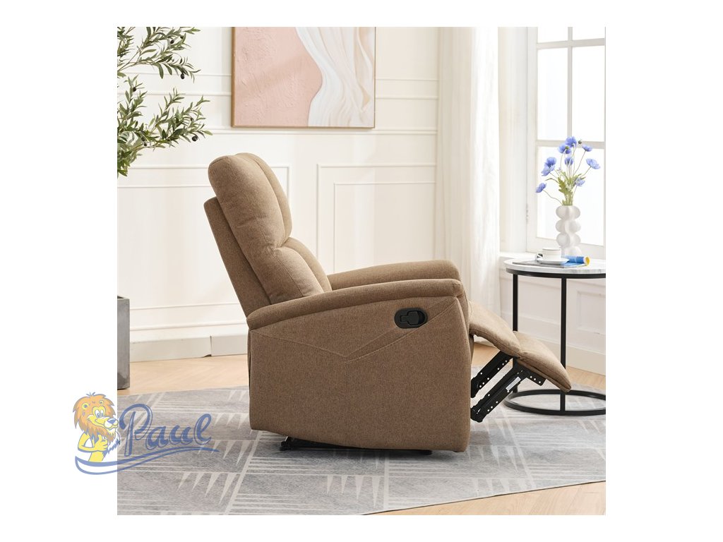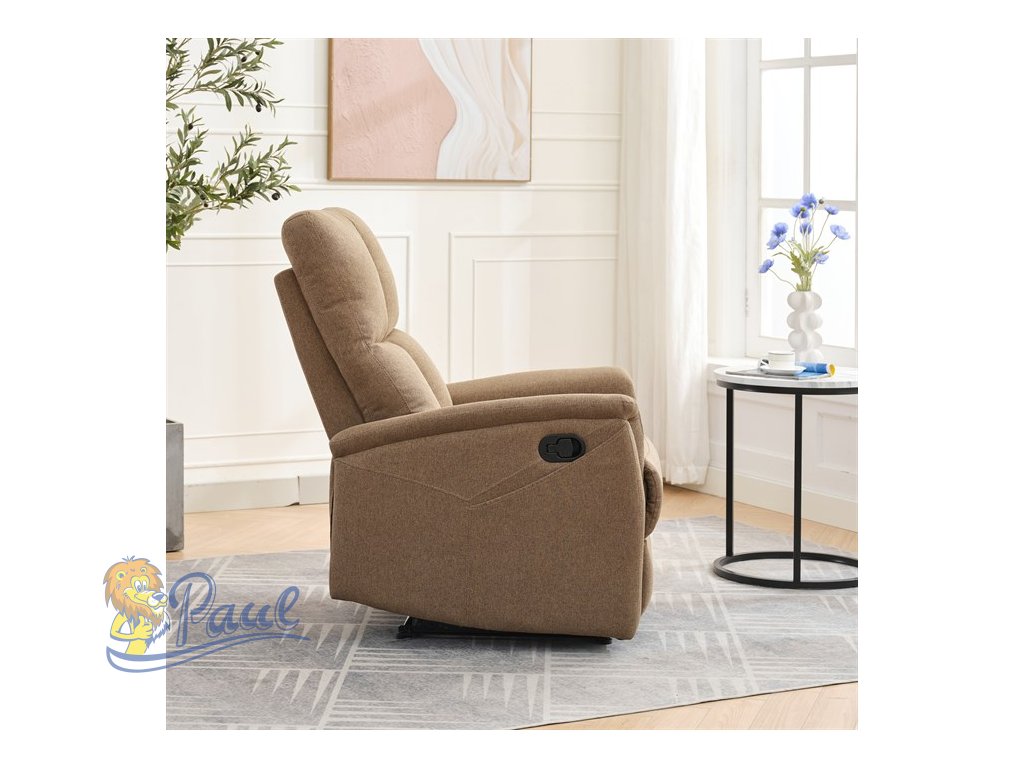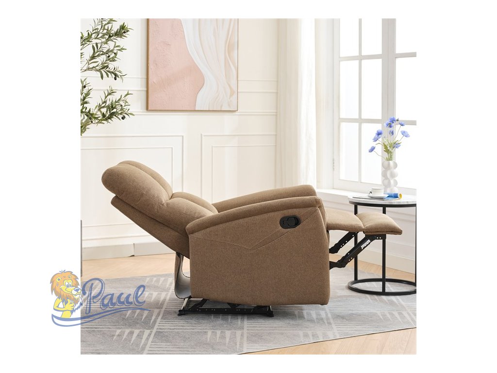 Relaxační křeslo, manuální ovládání, hnědá látka