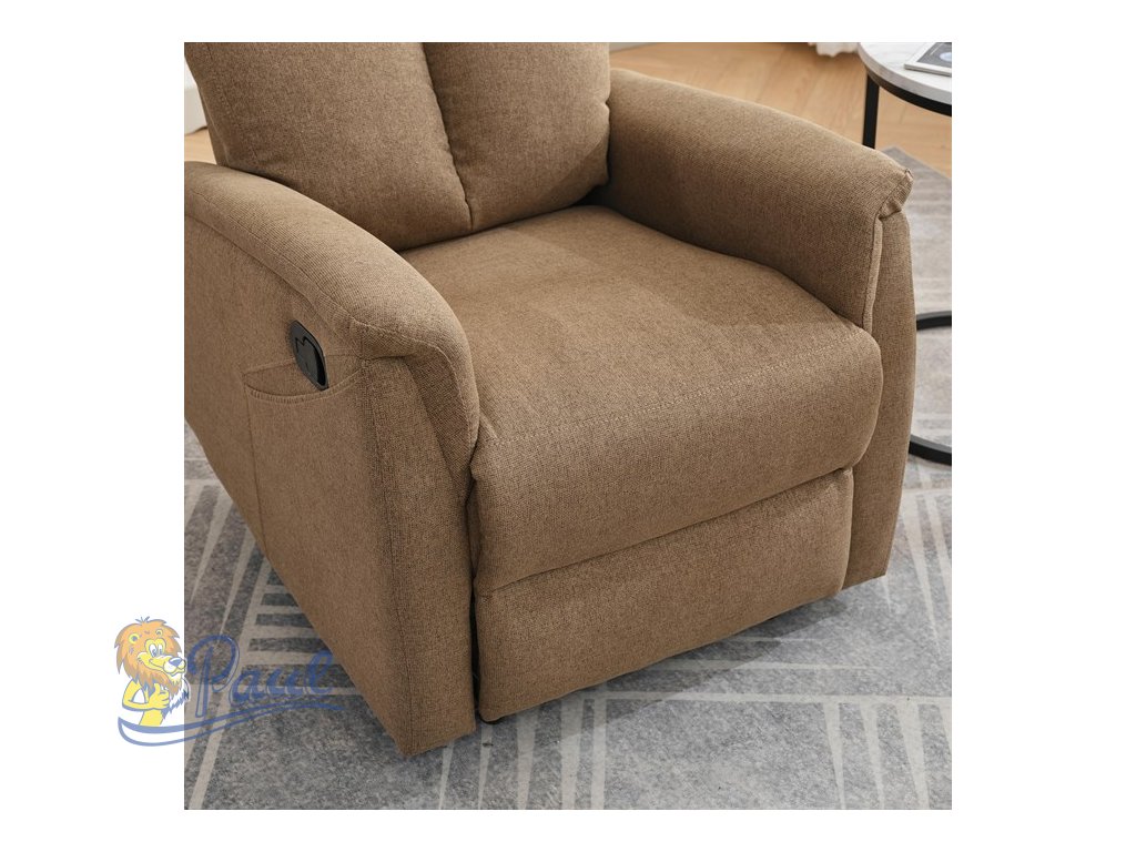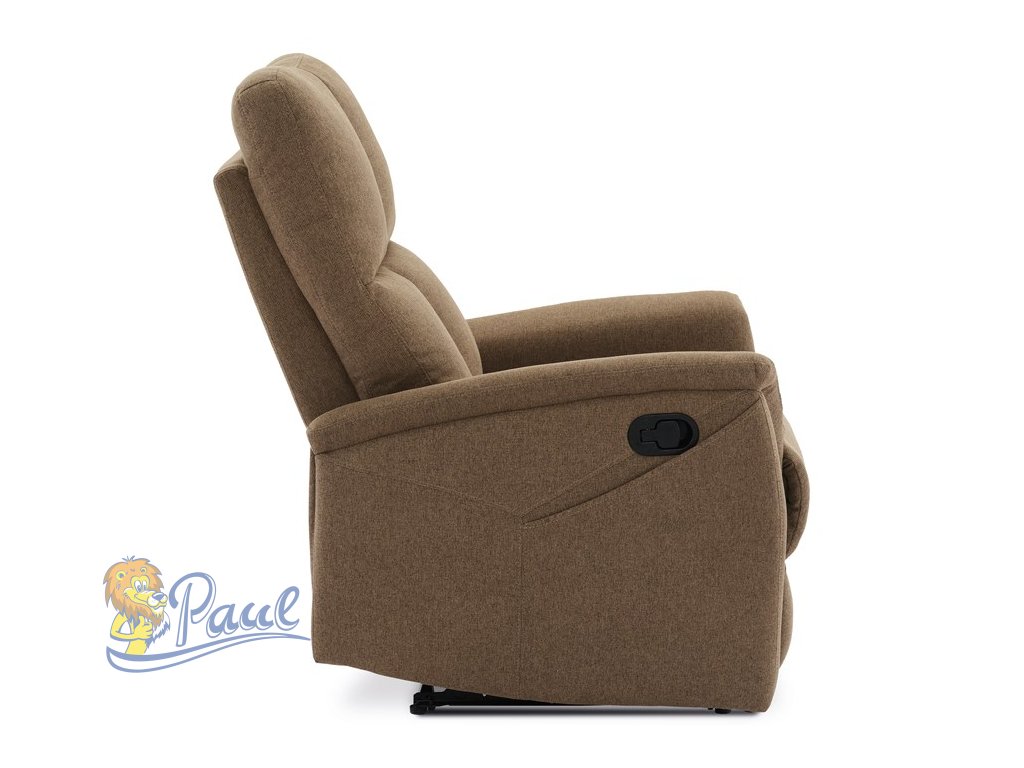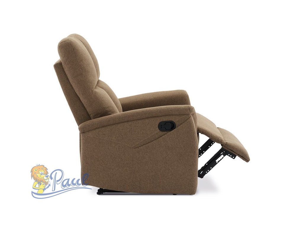 Polohovací křeslo, hnědé barvy, s manuálním ovládáním. Toto komfortní křeslo je vybaveno postranní pákou, která umožňuje snadné nastavení sklonu zadní opěrky a zvednutí podnožky. Na boku křesla je praktická kapsa pro uložení drobností, jako jsou časopisy nebo dálkový ovladač. Křeslo je navrženo pro maximální pohodlí a ergonomii, poskytuje vynikající podporu zad a relaxaci. Ideální pro každodenní odpočinek doma.Doplňkové parametry