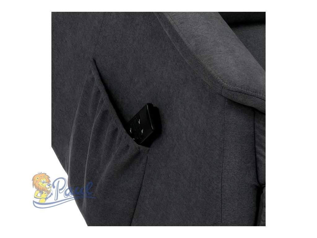 Elektricky ovládané TV a relaxační křeslo v šedé látce nabízí komfortní polohování díky dvěma samostatným motorům napájeným 240V. Pevný kovový rám zajišťuje stabilitu a dlouhou životnost, zatímco měkký potah z kvalitní látky příjemně obepíná ergonomicky tvarované opěradlo a sedák s integrovanou výklopnou funkcí pro snadné vstávání. Polohovací mechanismus umožňuje nastavení opěradla i podnožky nezávisle na sobě, což přispívá k maximálnímu pohodlí při sledování televize nebo relaxaci. Křeslo je vybaveno pevnými područi a praktickou boční kapsou pro odložení drobností. Díky kombinaci funkčnosti a kvalitního zpracování je vhodné do moderních obývacích pokojů i relaxačních zón.Doplňkové parametry
