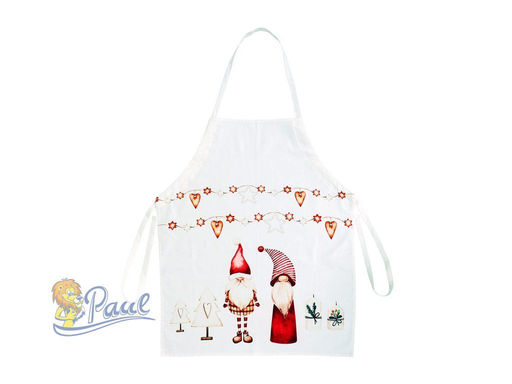 Buďte i v kuchyni naplno pohlceni vánoční atmosférou i díky této bílé stylové zástěře. Vánoční vzor s červeně oděnými skřítky v obklopení vánočních ozdob, přinese každému kulináři neodolatelný sváteční vzhled. Vyrobená ze 100% bavlny, tato zástěra je nejen stylová, ale také praktická a pohodlná při přípravě vánočních pokrmů.Doplňkové parametry