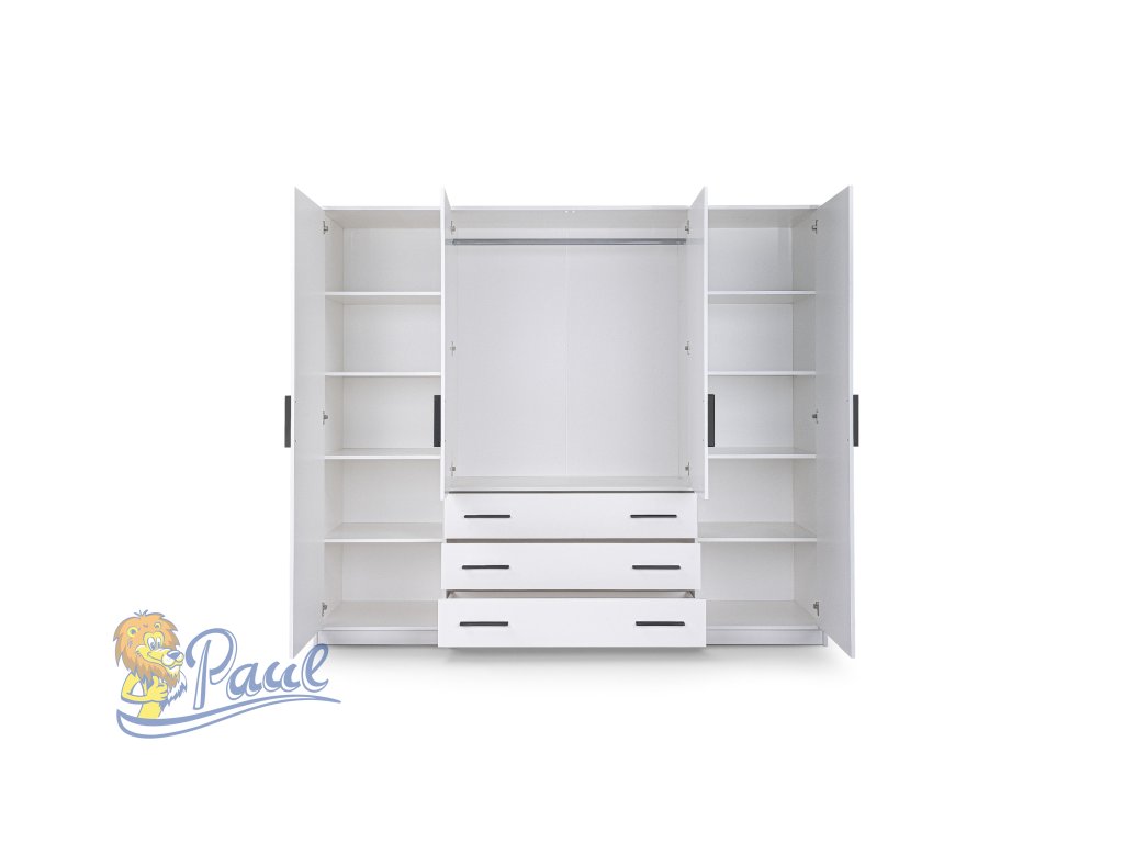Moderní šatní skříň Bali je nejen elegantní, ale také velmi praktická. Nabízí velký úložný prostor k pohodlnému a přehlednému uskladnění veškerého potřebného oblečení.•