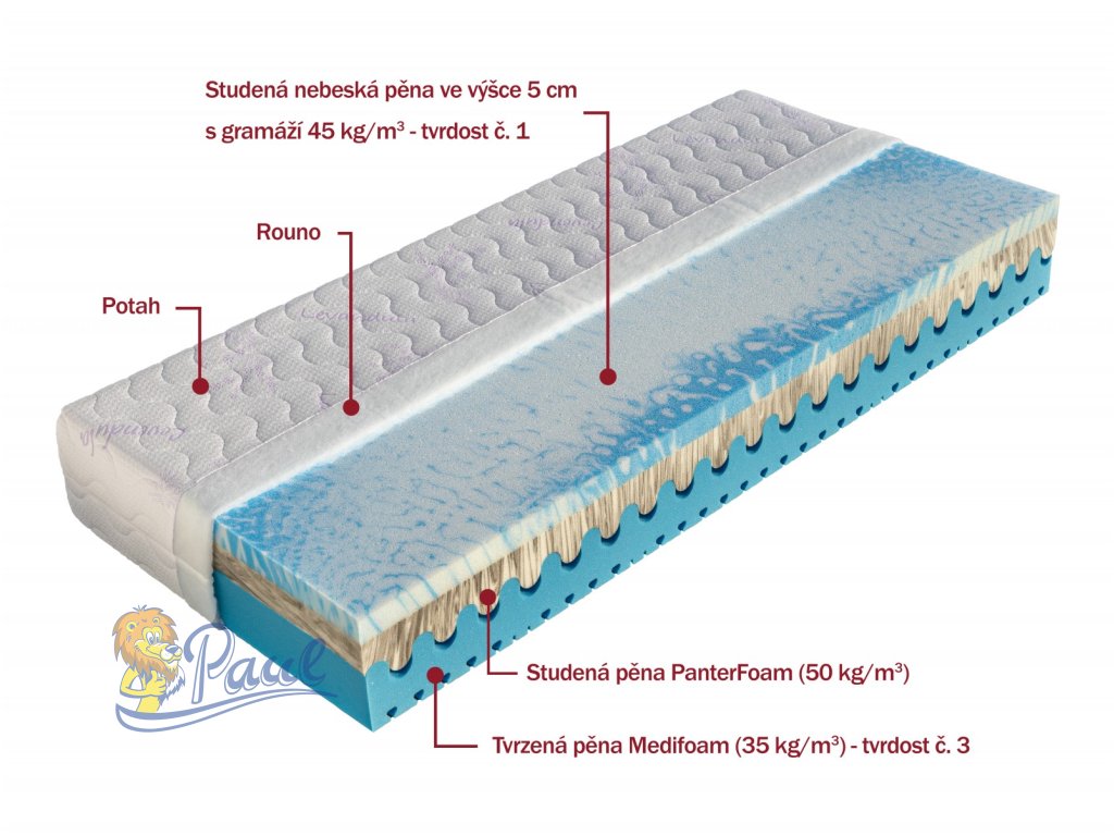 | typ matrace: | sendvičová, s dvojí tvrdostí, polyuretanová, s pěnou MediFoam |