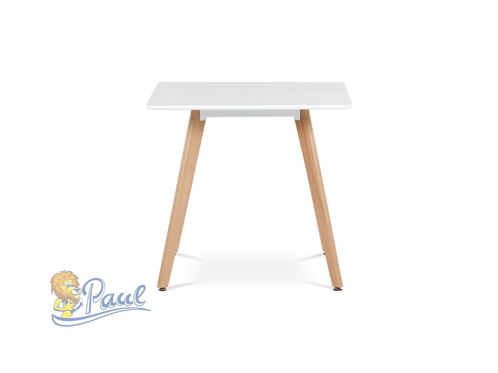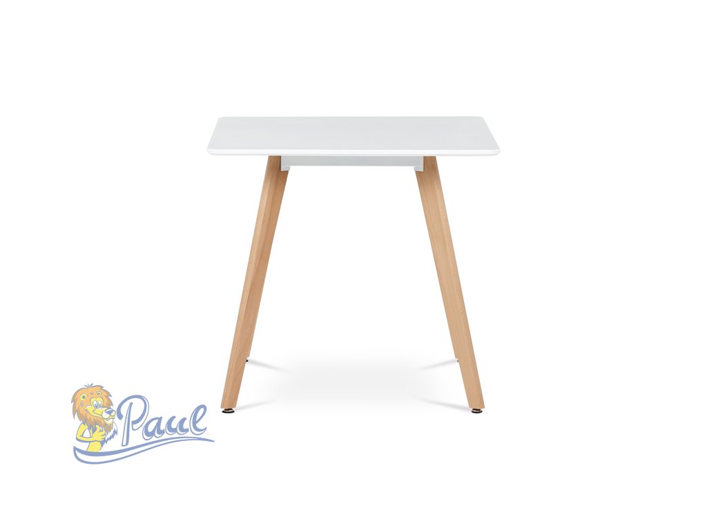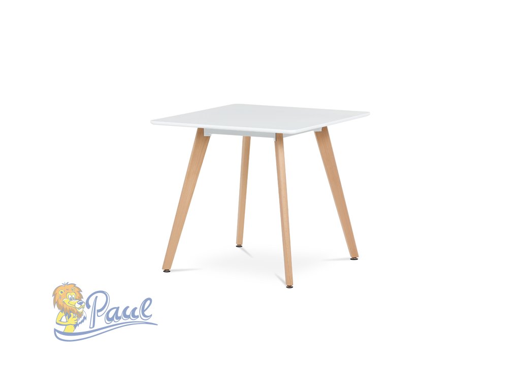 Jídelní stůl 80x80x75 cm, MDF, bílý matný lak, masiv buk