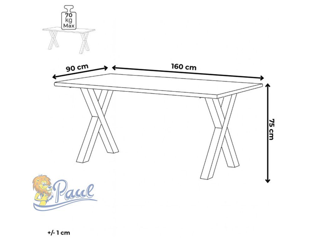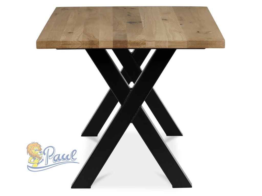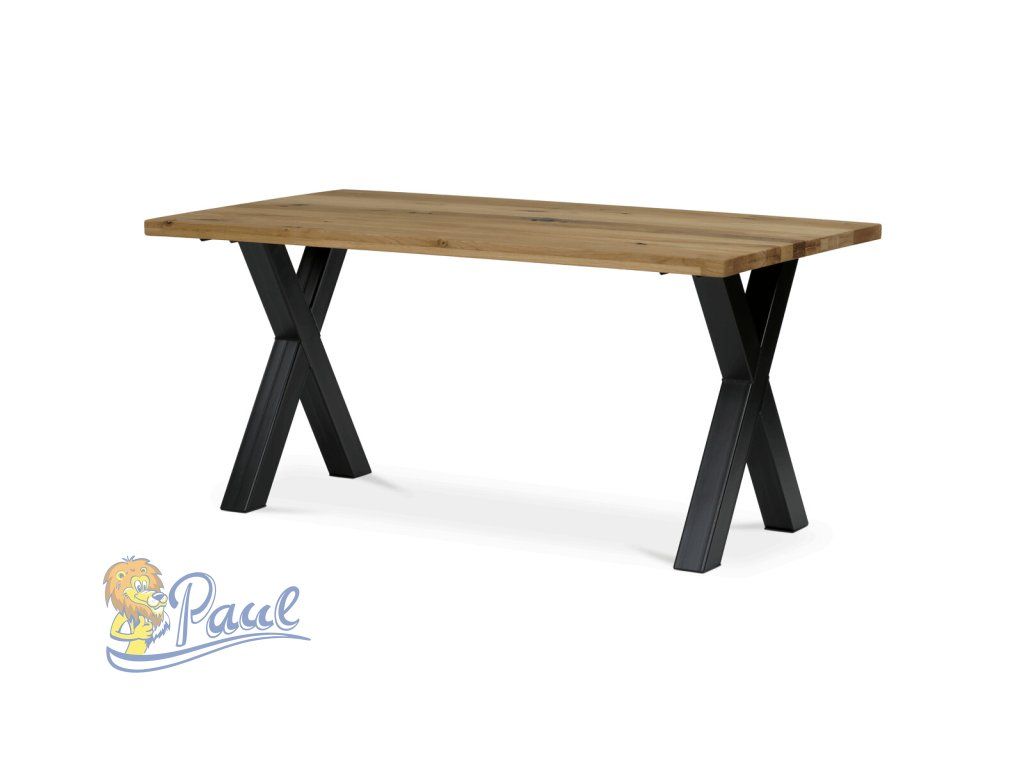 Stůl jídelní, 160x90x75 cm, masiv dub, kovové podnoží ve tvaru písmene "X" , černý lak