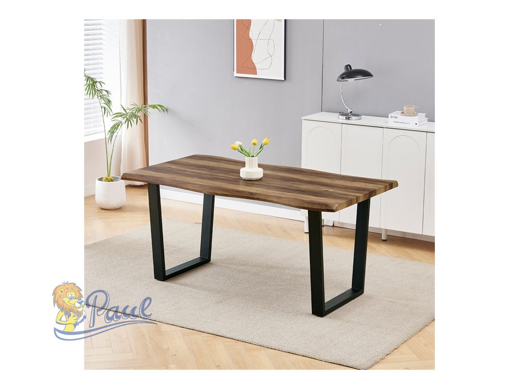 Stůl jídelní, 160x90x75 cm, MDF deska, dekor staré dřevo, kovová nohy ve tvaru U, černý matný lak