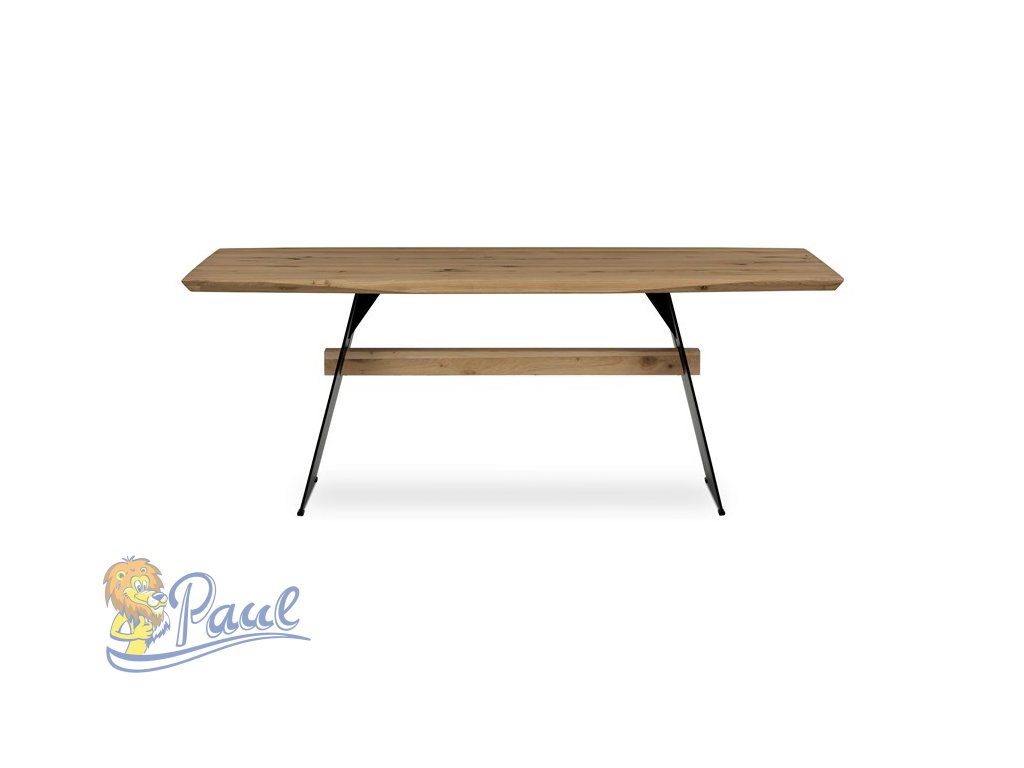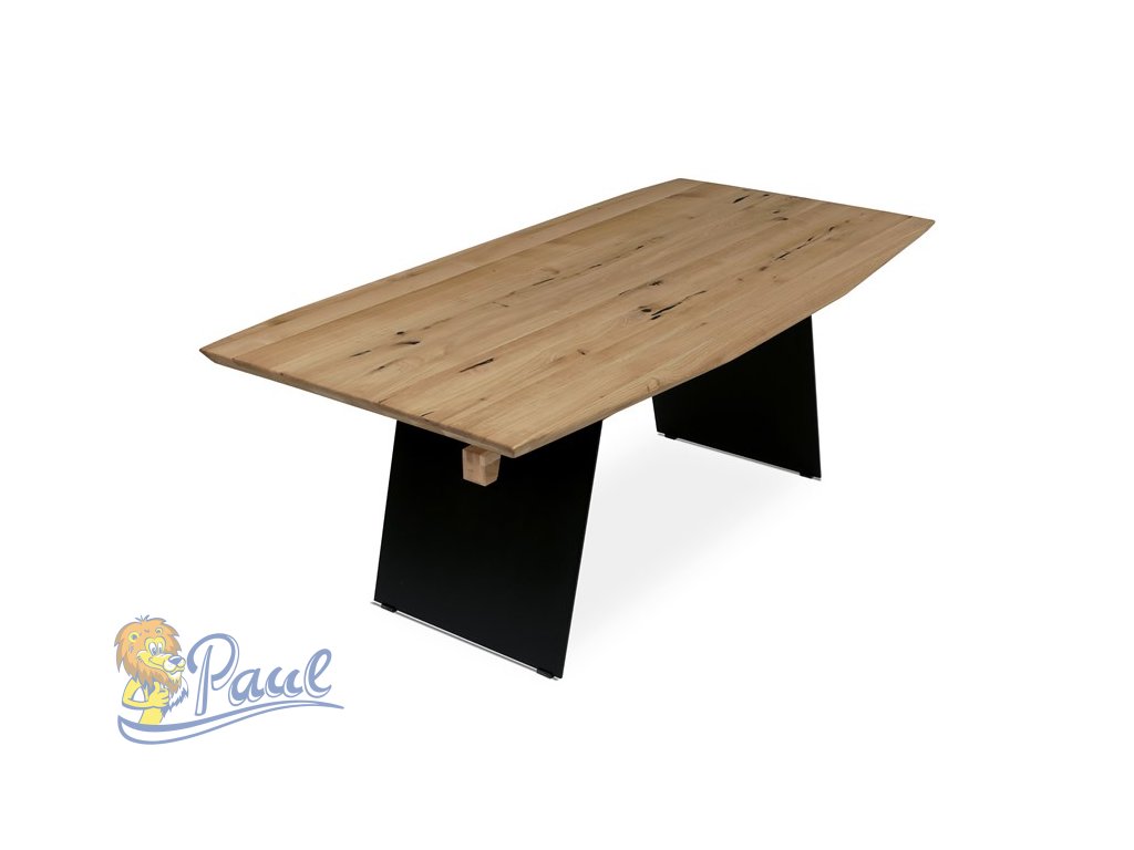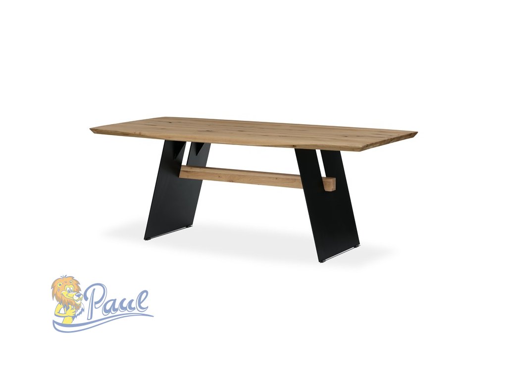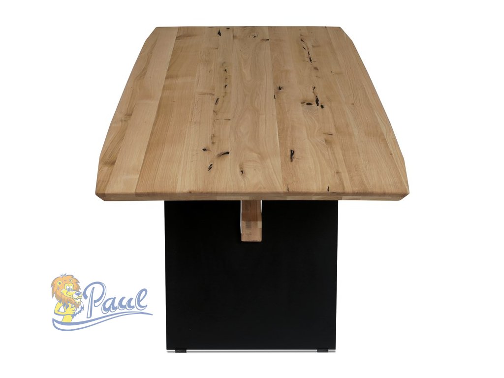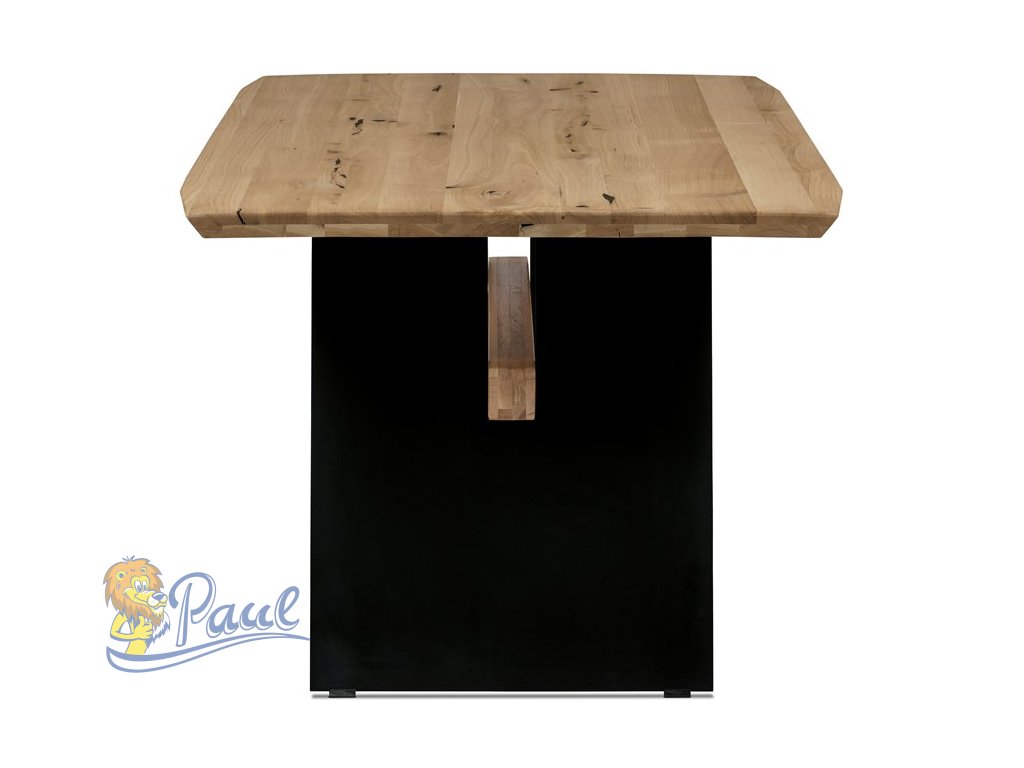 Stůl jídelní, 200x100 cm,masiv dub, zkosená hrana, kovová noha, černý lak