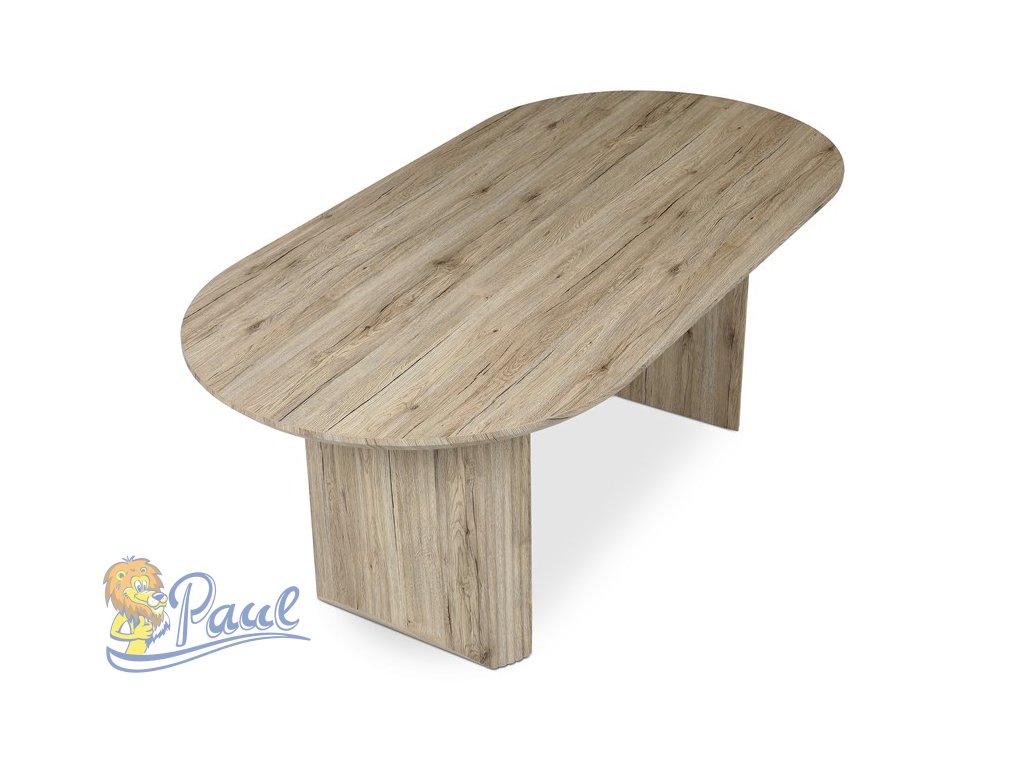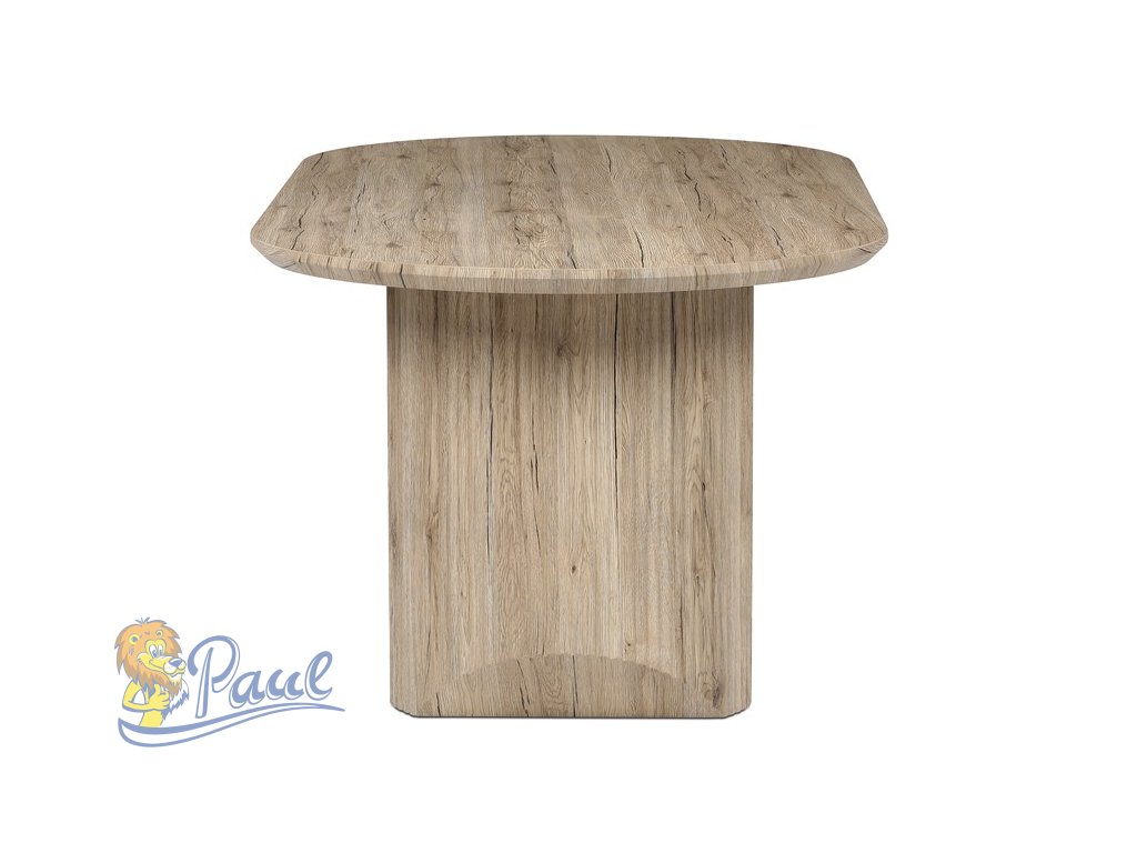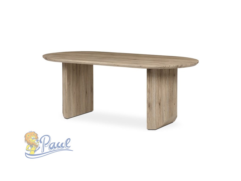 Jídelní stůl značky Autronic v přírodní dubové barvě vyniká moderním designem a kvalitním zpracováním. Oválná deska z MDF materiálu je odolná a snadno udržovatelná, což z něj činí ideální volbu pro rodinné večeře i slavnostní příležitosti. Matná povrchová úprava a detailně propracované nohy dodávají stolu stylový vzhled.Doplňkové parametry