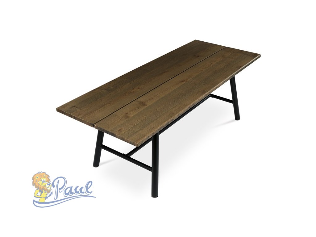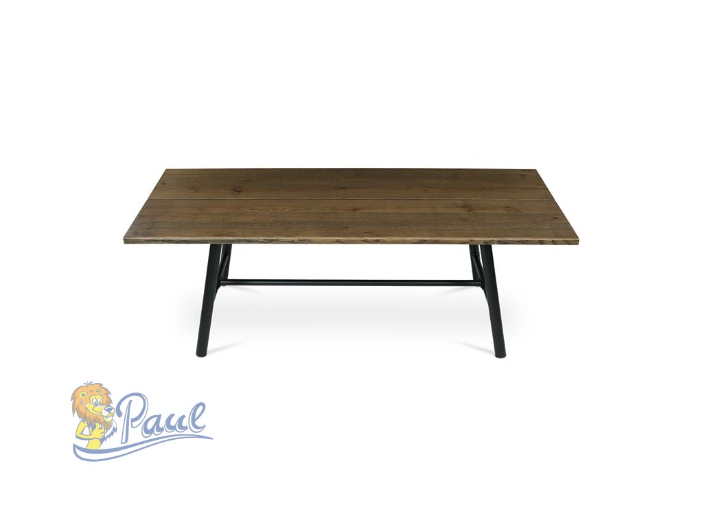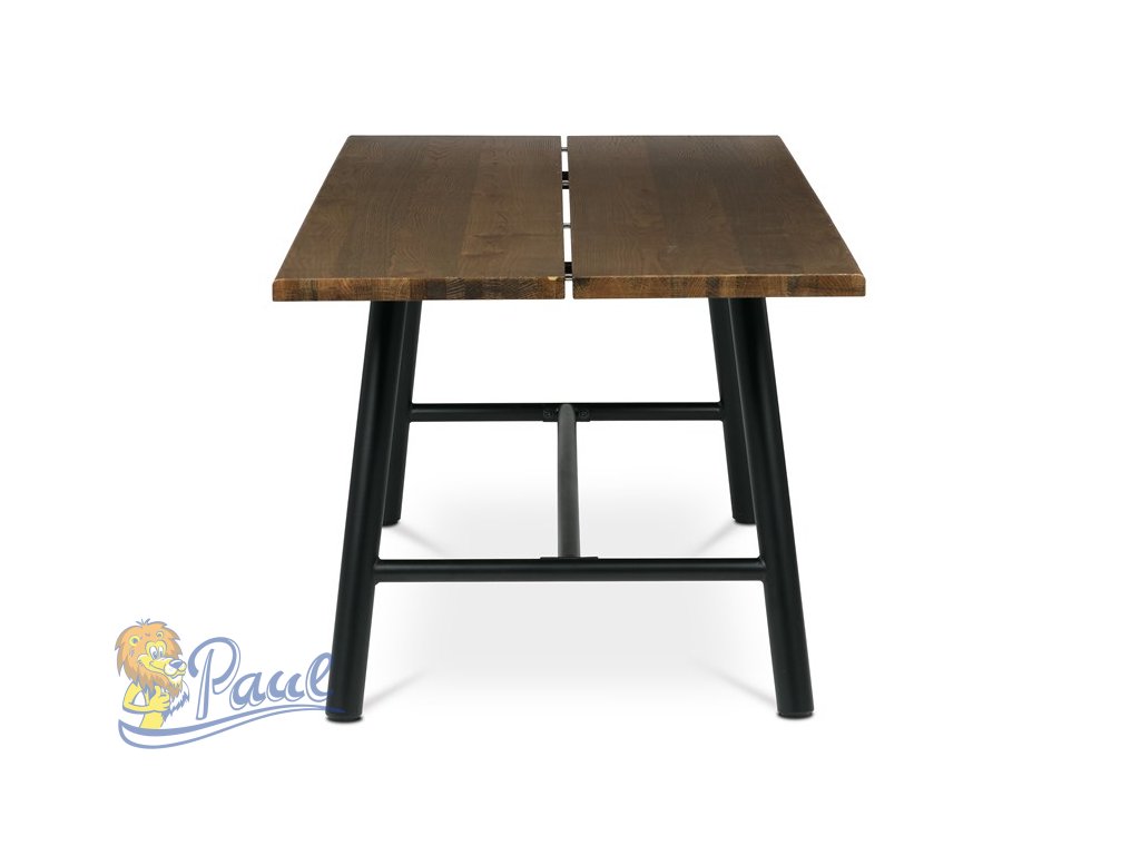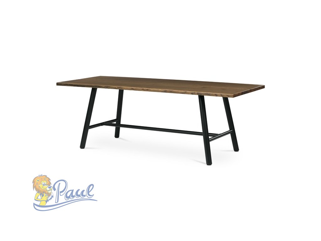 Stůl jídelní, 220x90cm, dýha, barva ořech, kovová černá noha