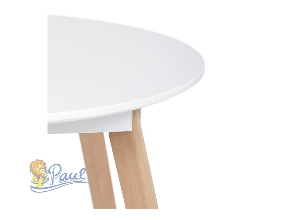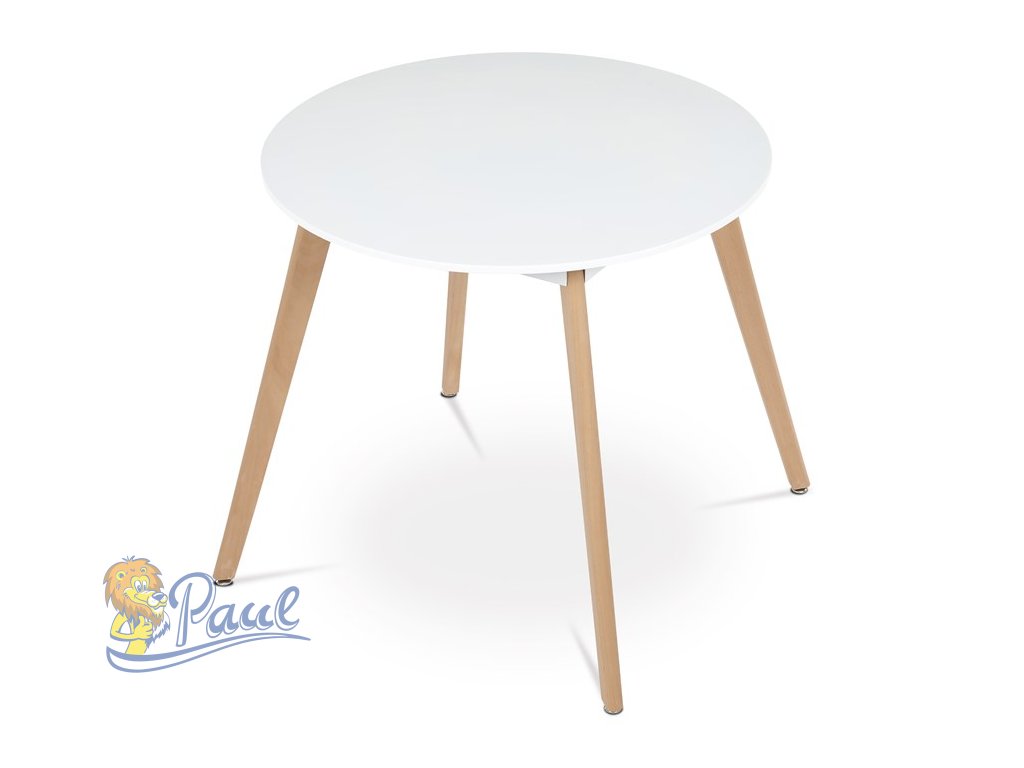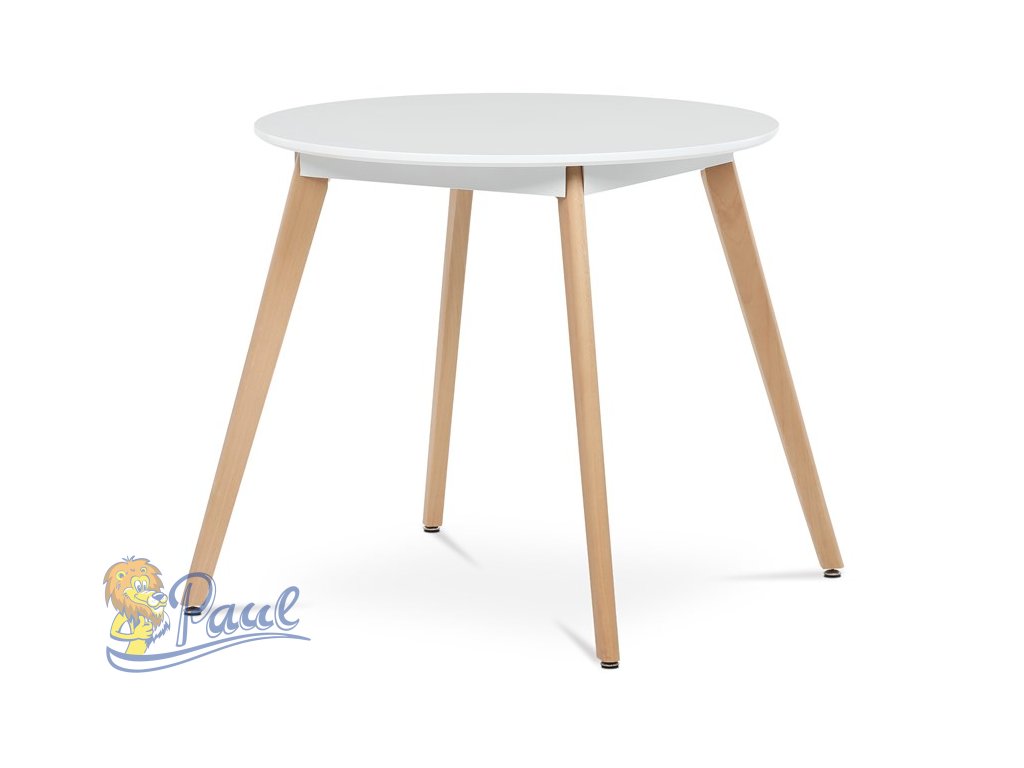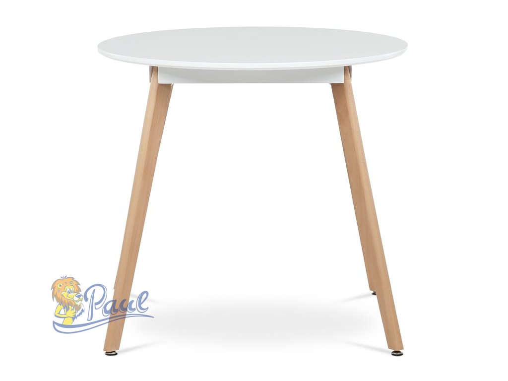 Stůl jídelní, 80x80x74 cm, MDF - bílý matný lak, kovová kostrukce, dřevěné nohy