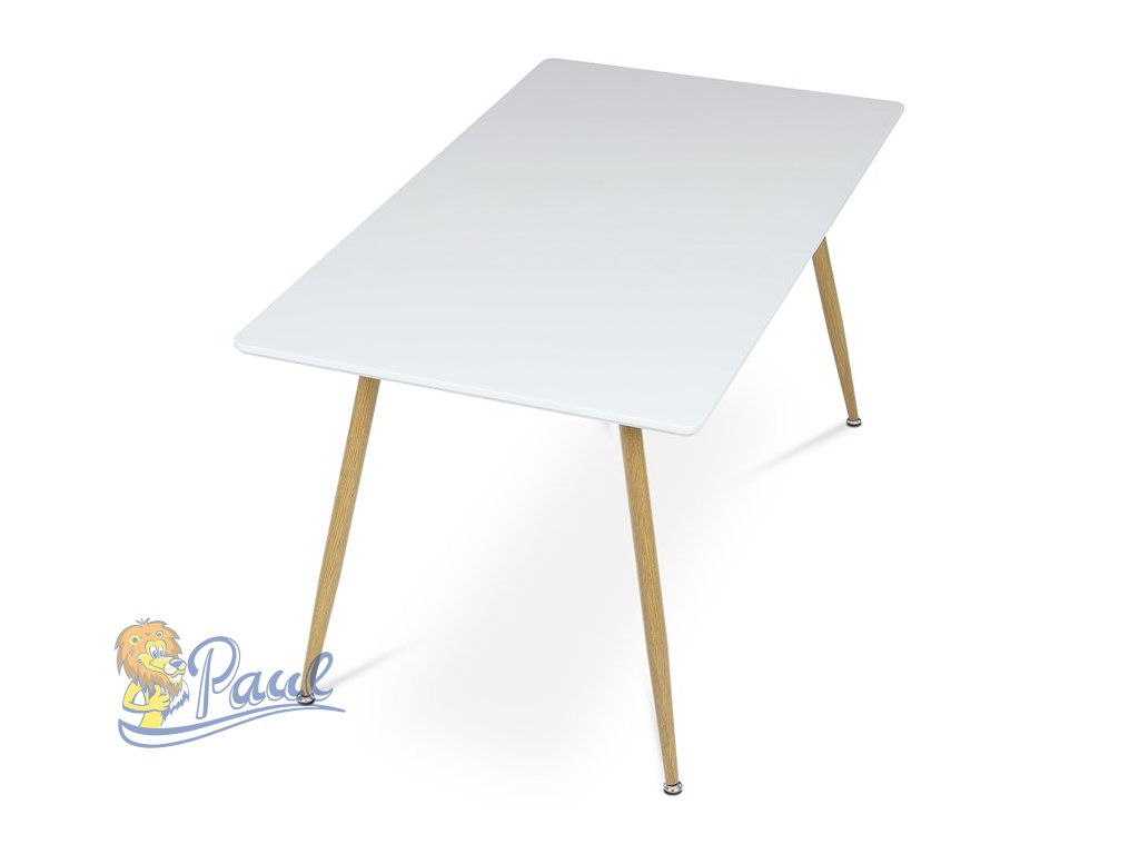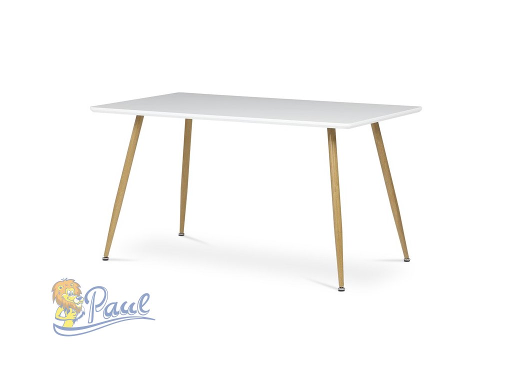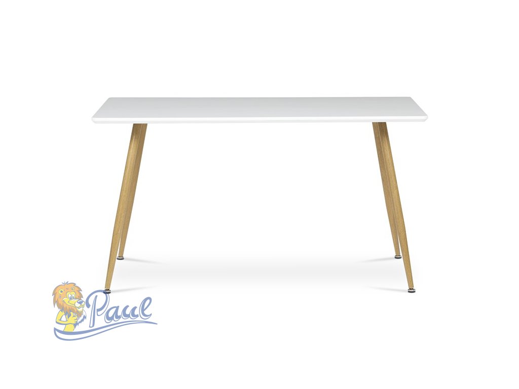 Stůl jídelní 140x80, MDF, bílá matná deska, kovové nohy v barvě dubu.
