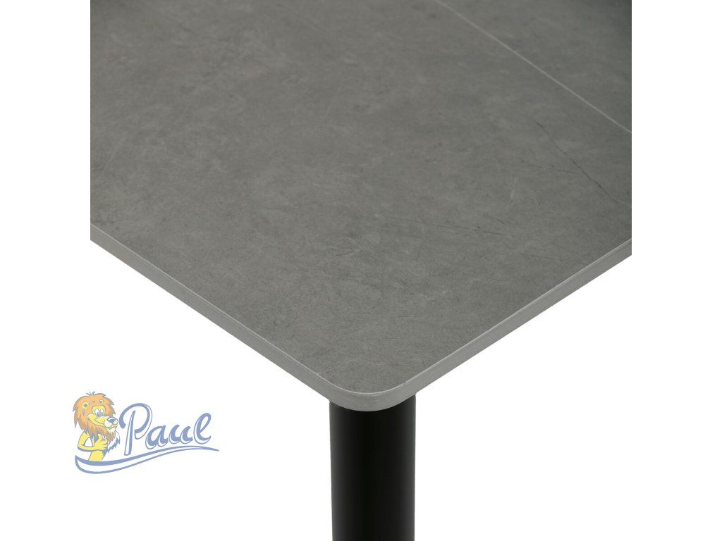 Stůl jídelní 80x80 cm, keramická deska šedý mramor, černé kovové nohy