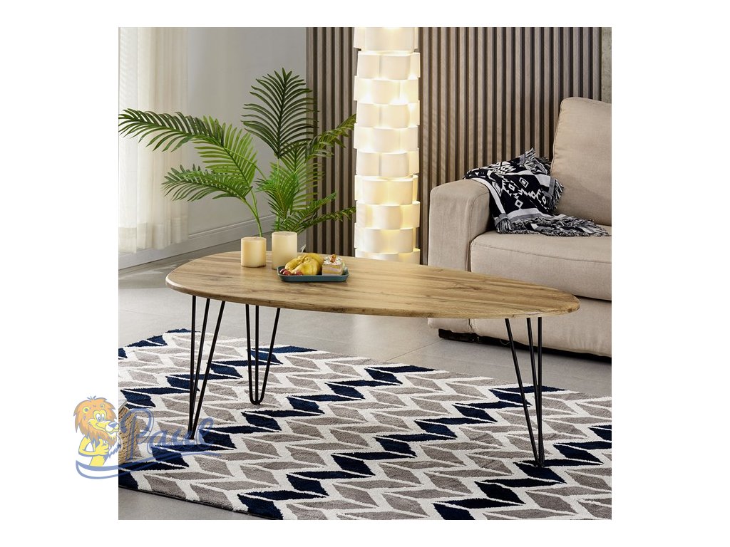 Konferenční stůl, MDF deska, dekor divoký dub, černý kov