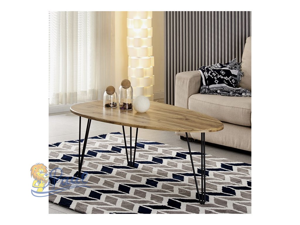 Vyzkoušejte podstatu třídy a stylu s naším industriálním konferenčním stolkem Autronic. Tento konferenční stolek prosycený moderní sofistikovaností v sobě snoubí sytě hnědý dekor divokého dubu z materiálu MDF s moderní siluetou atypického tvaru horní desky a podnože na třech nohách. Dynamická architektonická podnož je vyrobena z černého, vysoce kvalitního kovu, který dokonale doplňuje odstín naší horní desky v barvě divokého dubu. Tento konferenční stolek Autronic je příkladem chytrého moderního designu ztělesňujícího luxus a spolehlivost, který se hodí jak do komerčních prostor, tak do soukromých domácností.Doplňkové parametry