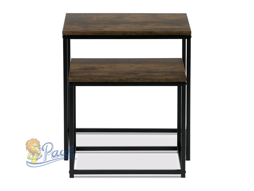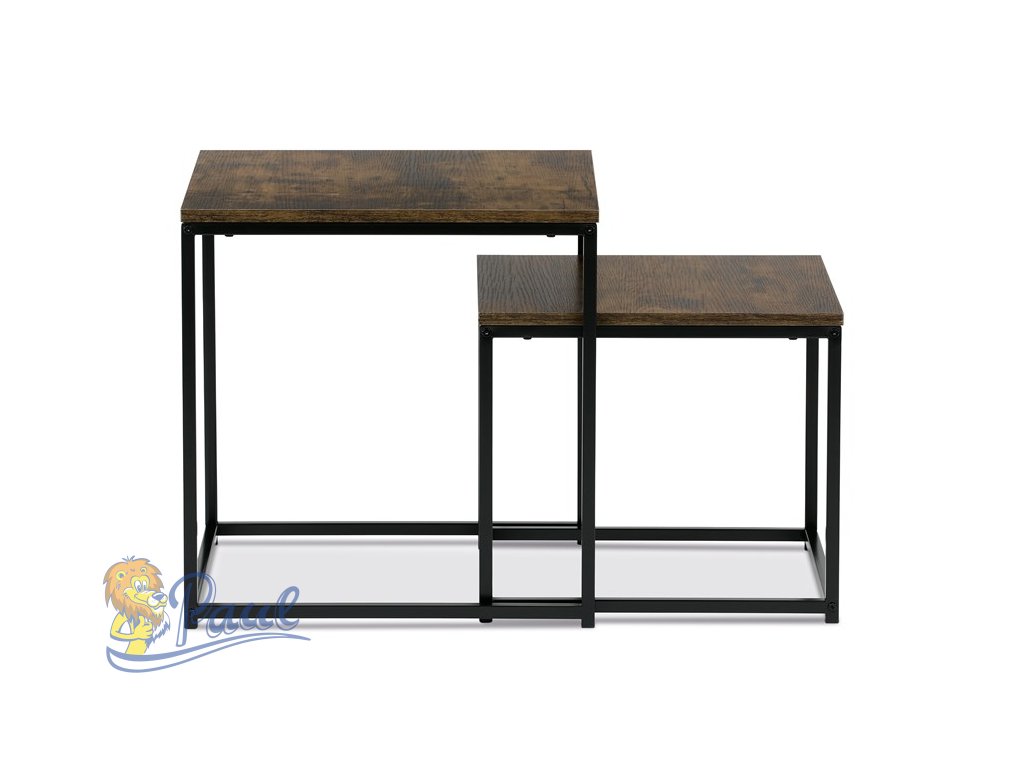 Set 2 ks odkládacích stolků, MDF, dekor divoký dub, kov, černý lak