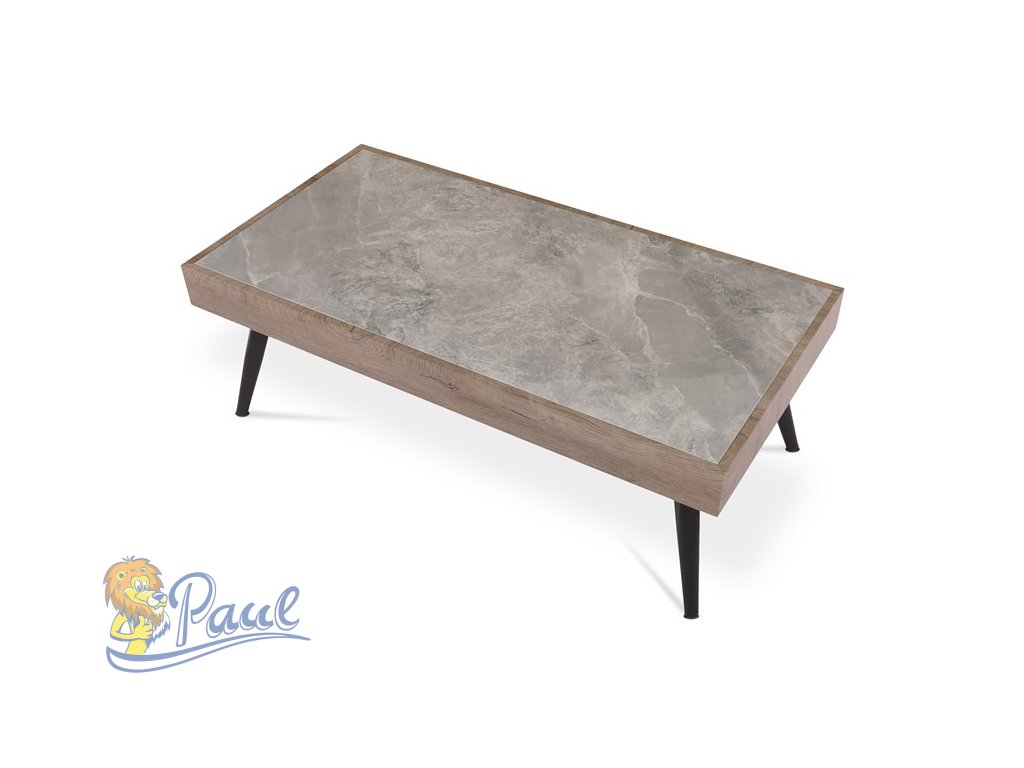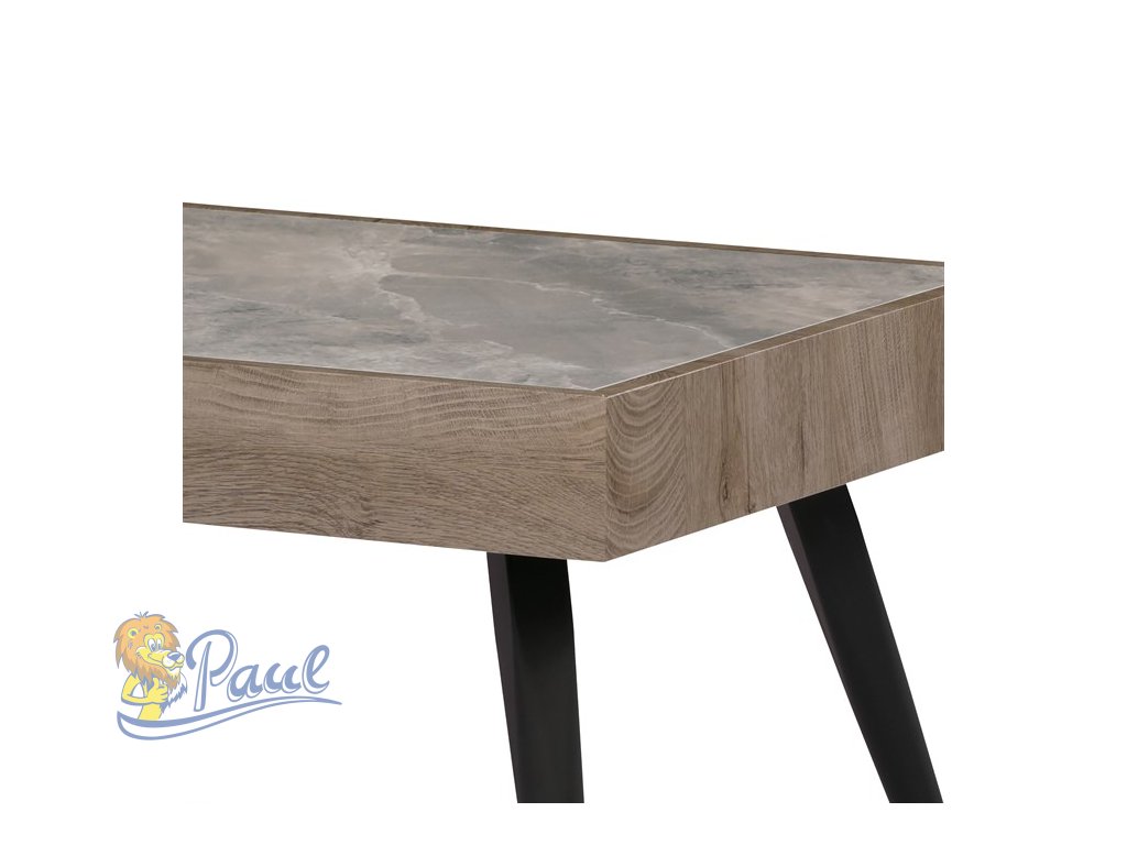 Stůl konferenční, deska slinutá keramika 120x60, šedý mramor, nohy černý kov, světle hnědá dýha