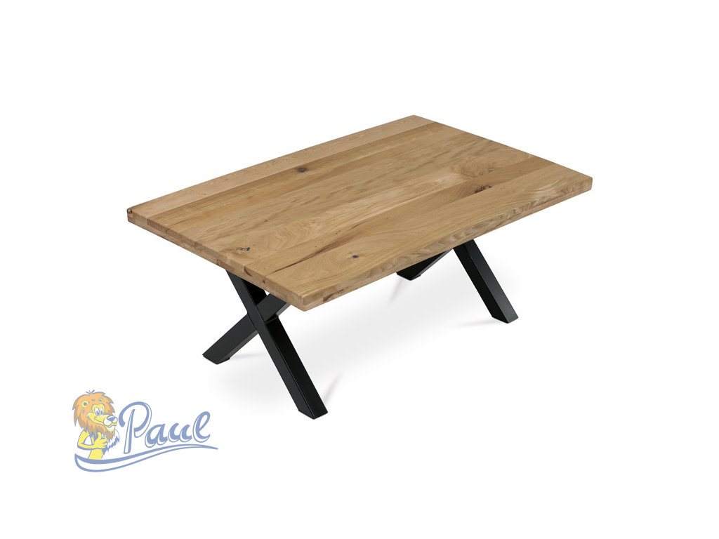 Stůl konferenční 110x70x45cm, masiv dub, rovná hrana, kovová noha "X" 5x5 cm