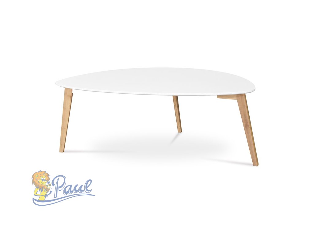 Stůl konferenční 120x60x45 cm, MDF bílá deska, nohy bambus přírodní odstín