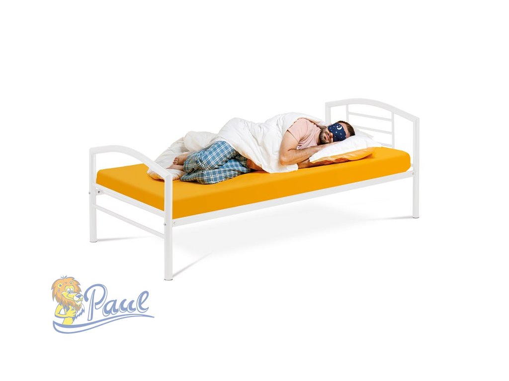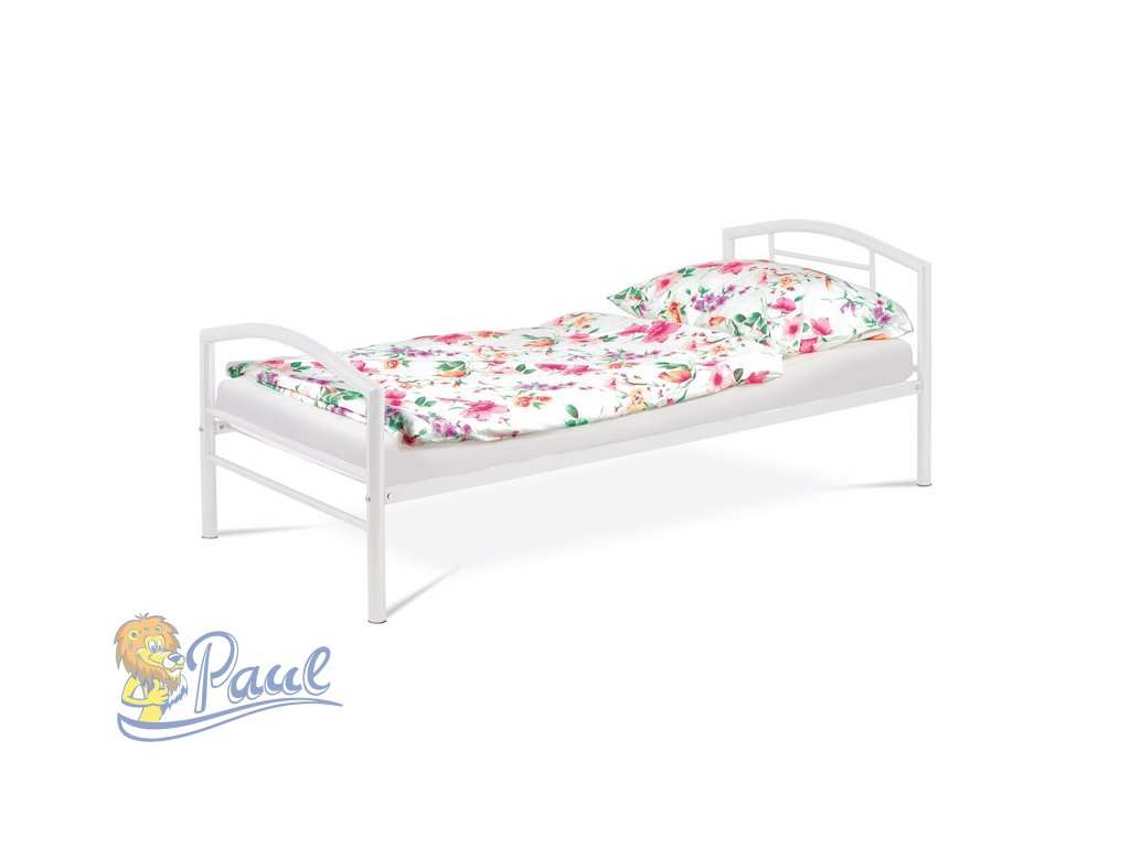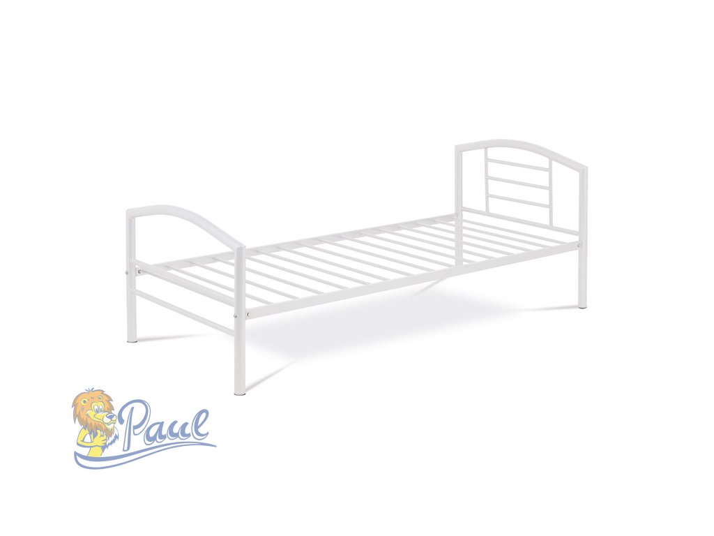 Postel jednolůžková 90x200 cm, kovová bílý lesk