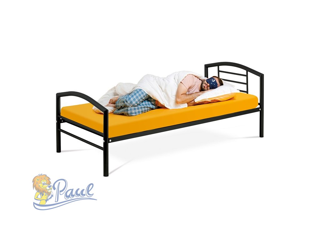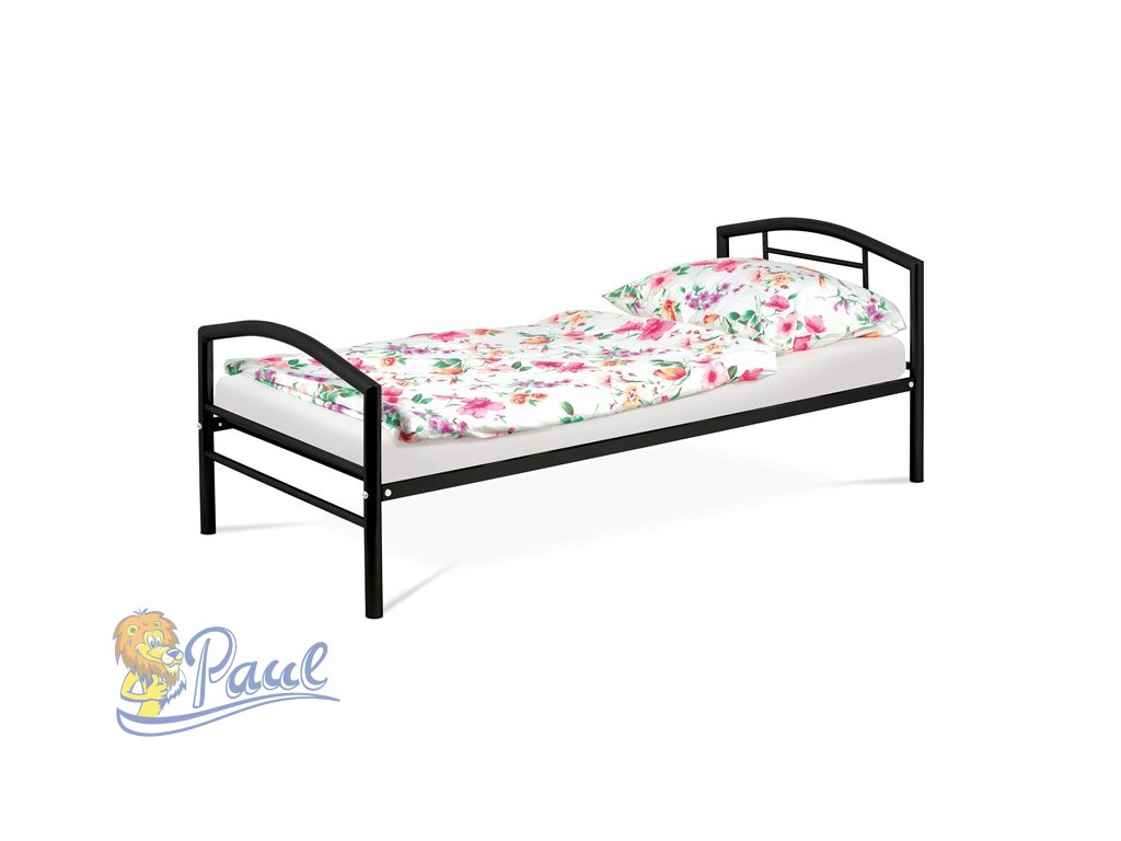 Postel jednolůžková 90x200 cm, kovová černý lesk