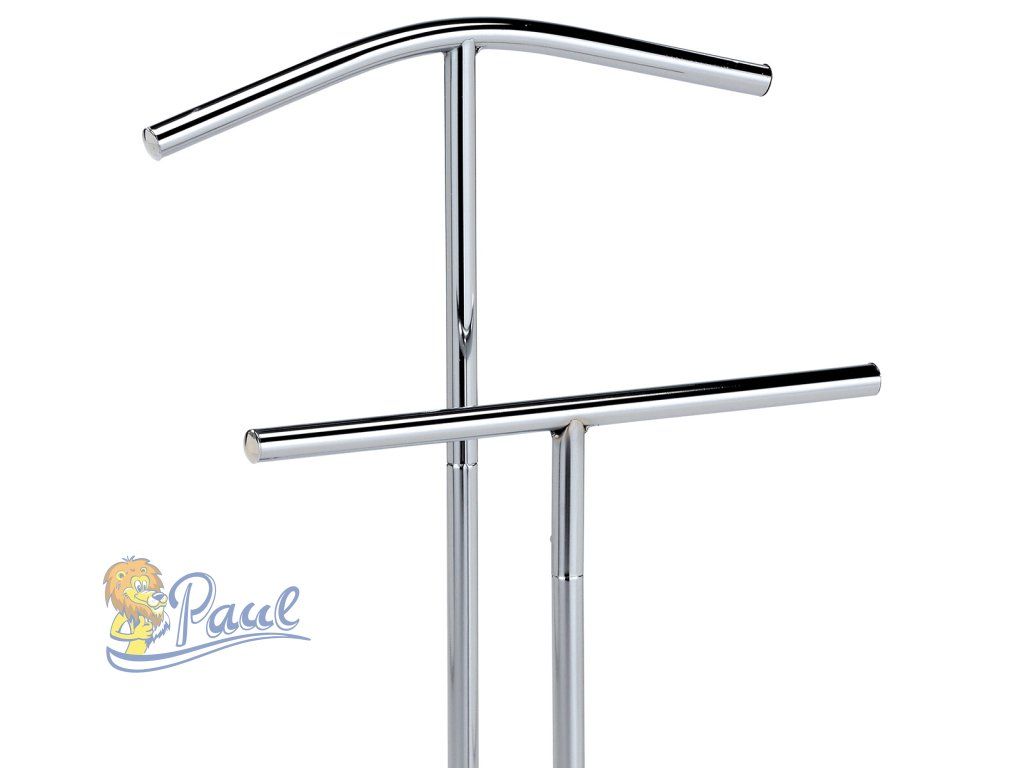 Němý sluha v lesklém chromovém provedení nabízí praktické řešení pro uložení oděvů a doplňků v ložnici či předsíni. Jeho kovové tělo je pevné a stabilní, s výškou 104 cm poskytuje dostatek prostoru pro zavěšení košil, kalhot i dalších kousků oblečení. Kulatá základna zajišťuje bezpečnou oporu a nosnost až 5 kg umožňuje pohodlné uložení více věcí najednou. Minimalistický design s čistými liniemi se snadno kombinuje s různými styly interiérů a zároveň šetří místo díky kompaktním rozměrům.Doplňkové parametry