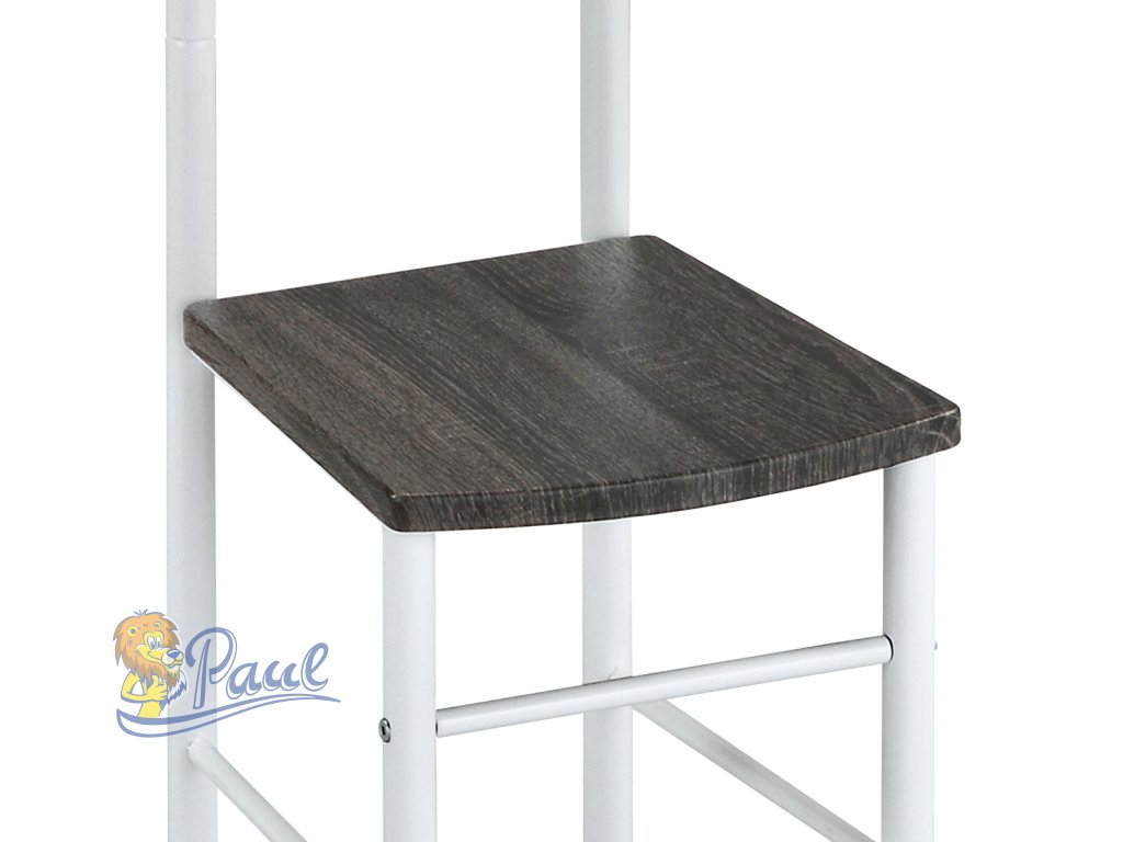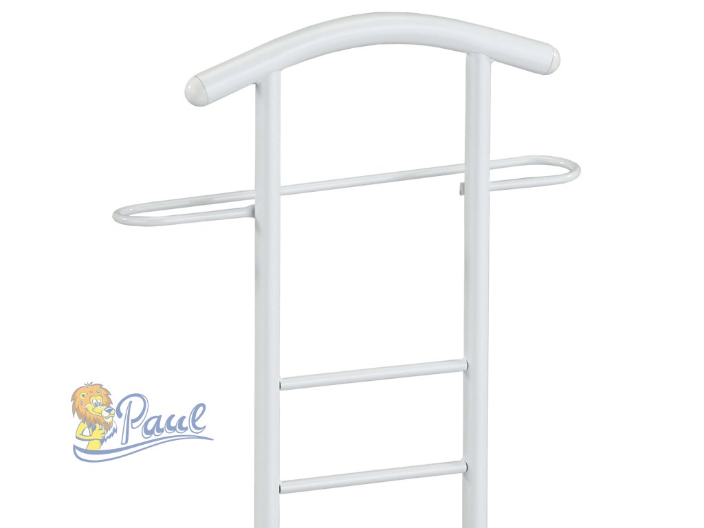 Němý sluha v bílém laku kombinuje kovové tělo s praktickým sedákem z MDF v dekoru černý dub, který dodává celku příjemný kontrast. Výška 119 cm nabízí dostatek prostoru pro zavěšení oděvů či doplňků, zatímco pevná kovová základna zajišťuje stabilitu a nosnost až 90 kg. Design s několika příčkami umožňuje efektivní uspořádání oblečení a doplňků, což z něj činí funkční doplněk do ložnice či předsíně. Povrchová úprava kovu bílým práškovým lakem přispívá k dlouhé životnosti a snadné údržbě. Díky kompaktním rozměrům je vhodný i do menších prostor.Doplňkové parametry
