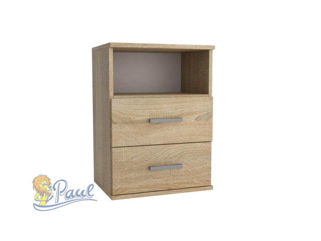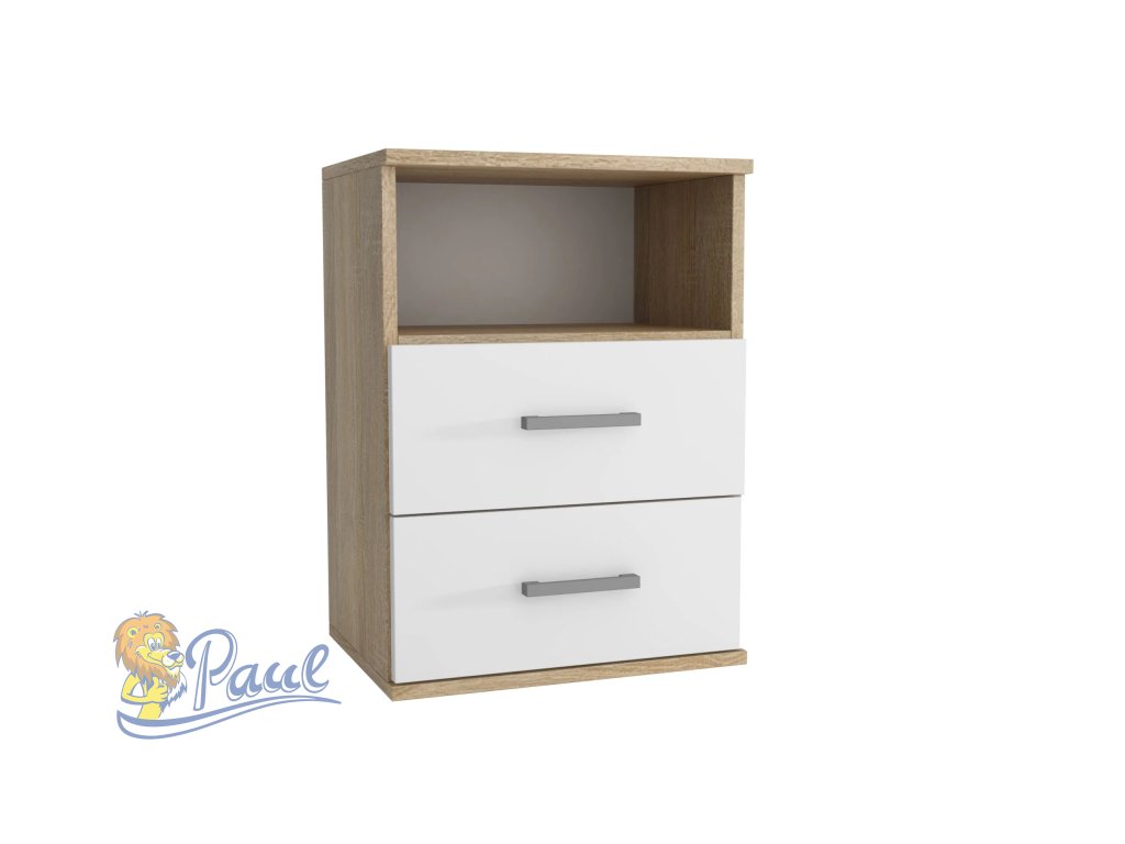 Noční stolek je vyroben v odstínu dub artisan, dub sonoma, nebo v kombinaci dub sonoma a bílá.