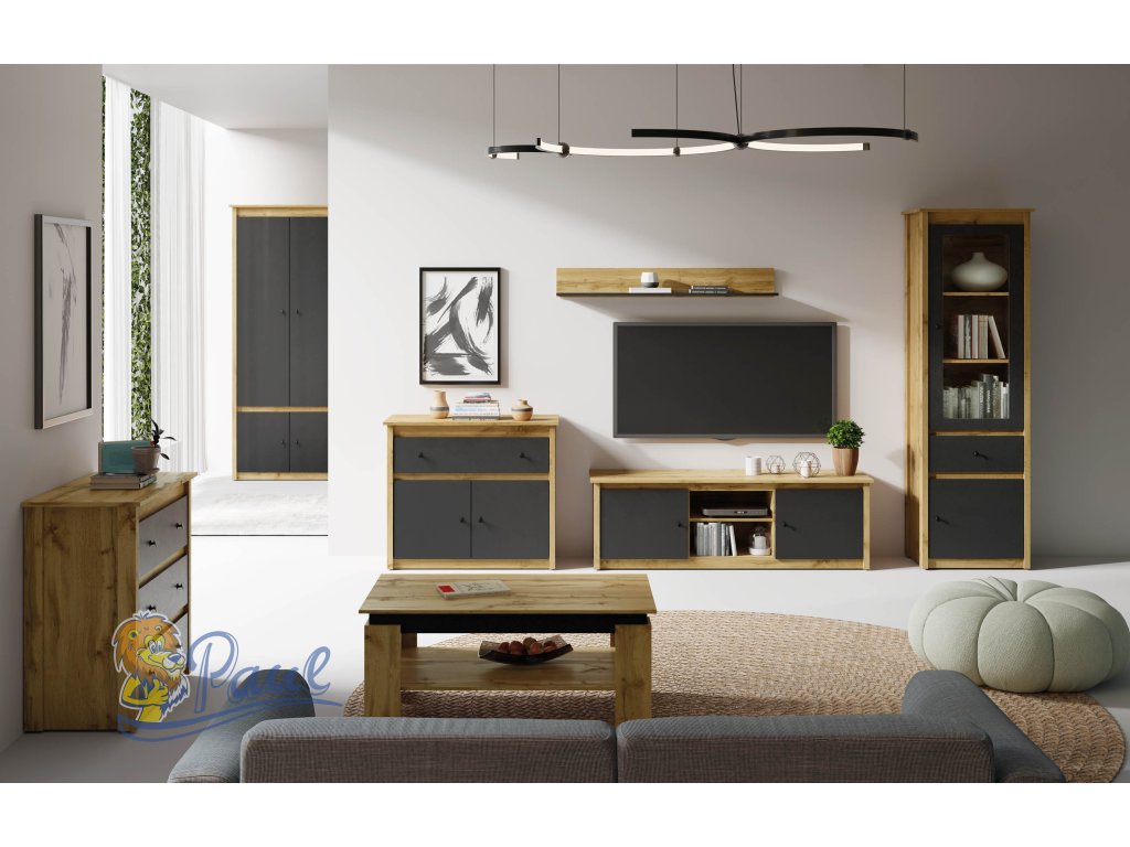 Moderní obývací sestava Luna je k dispozici v klasické barevné kombinaci dub wotan a černá. Praktická obývací sestava se bude hodit do vašeho obývacího pokoje. Jednotlivé komponenty lze zakoupit i samostatně a v další barevné variantě.