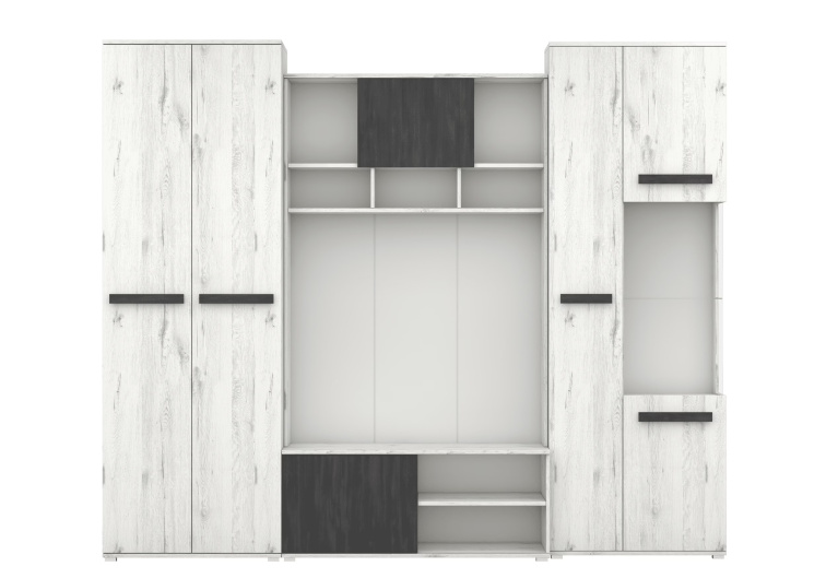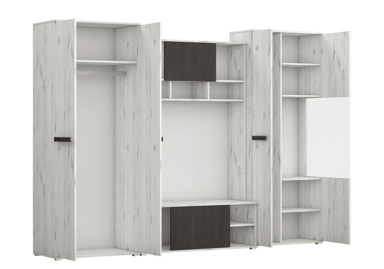 Obývací stěna VIVA, 280 cm, dub craft bílý / borovice černá.