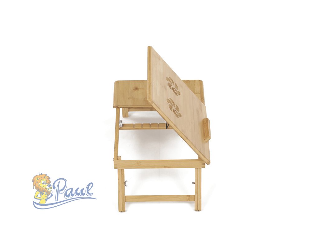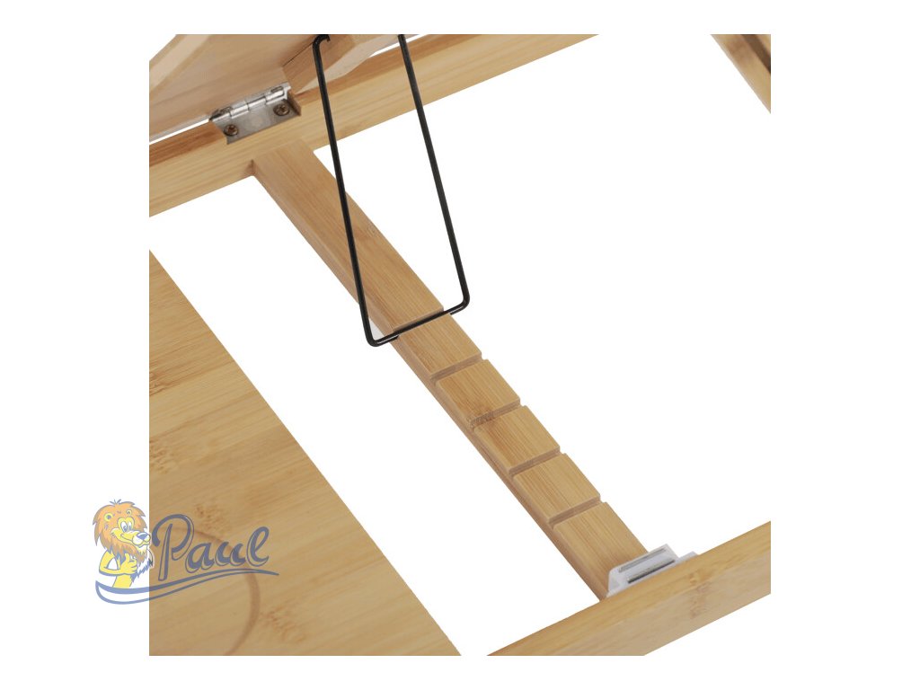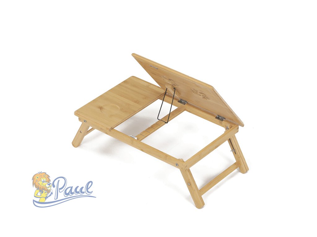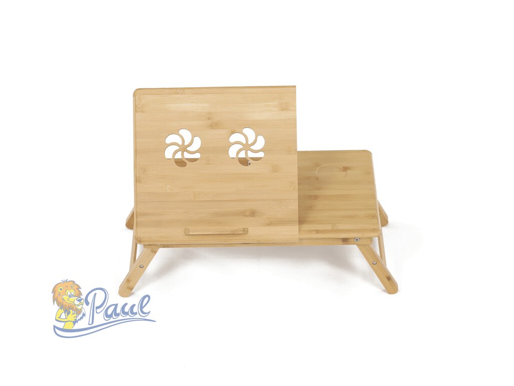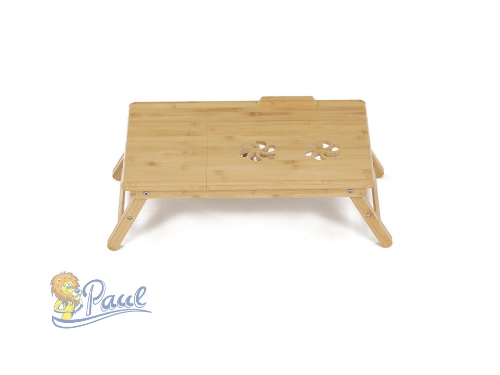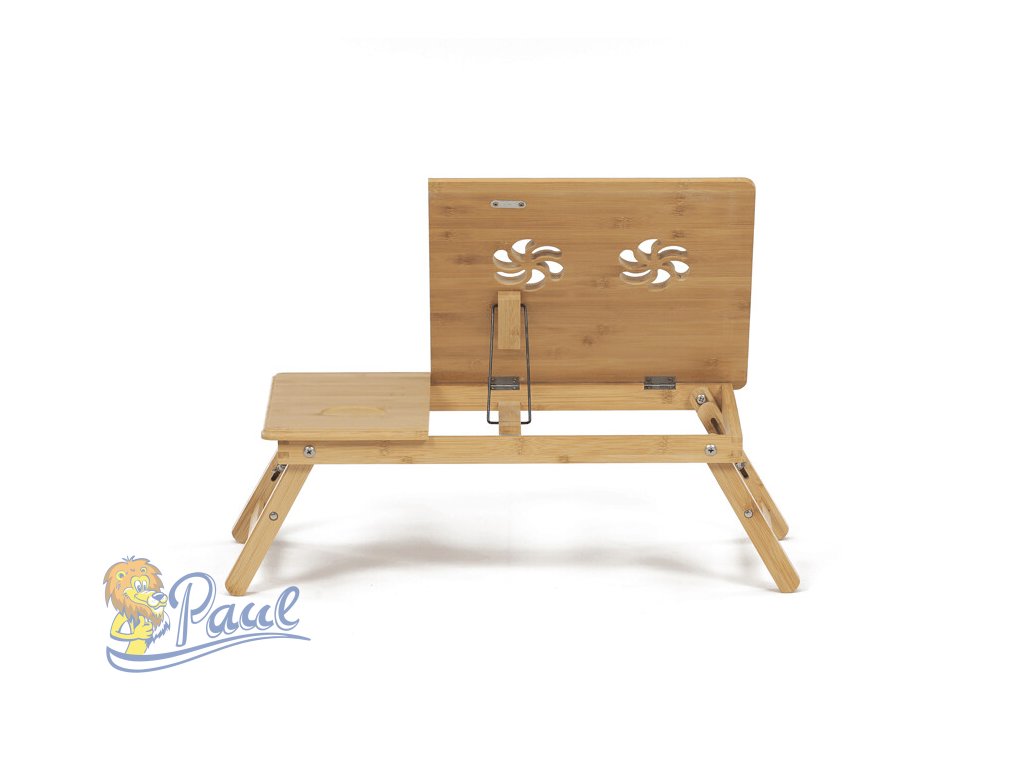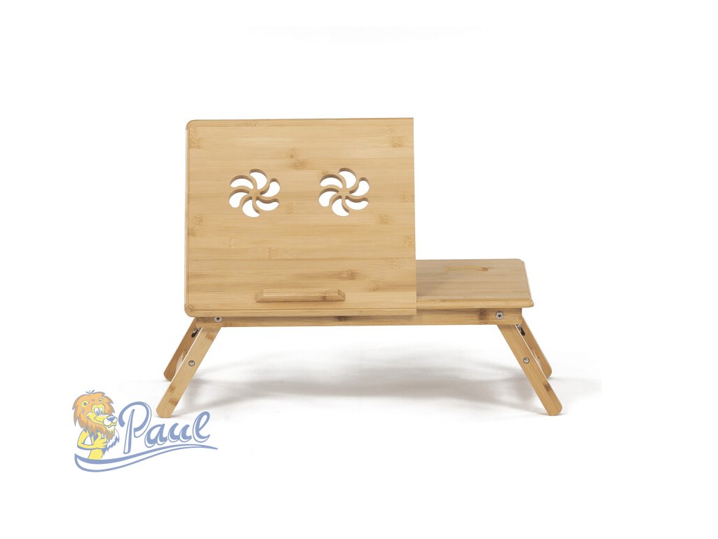 Skládací stolek na notebook z masivního bambusu v přírodním odstínu nabízí praktické a estetické řešení pro práci i odpočinek. Deska stolku je rozdělena na dvě části, přičemž hlavní část je nastavitelná do několika úhlů a opatřená větracími otvory pro lepší chlazení zařízení. Vedlejší plocha slouží jako odkládací prostor například na myš nebo šálek. Pevné nohy z masivního bambusu jsou vybaveny protiskluzovými koncovkami a umožňují snadné skládání pro úsporu místa při skladování či přepravě. Díky kvalitnímu přírodnímu materiálu se stolek snadno udržuje a je navržen pro dlouhou životnost.Doplňkové parametry