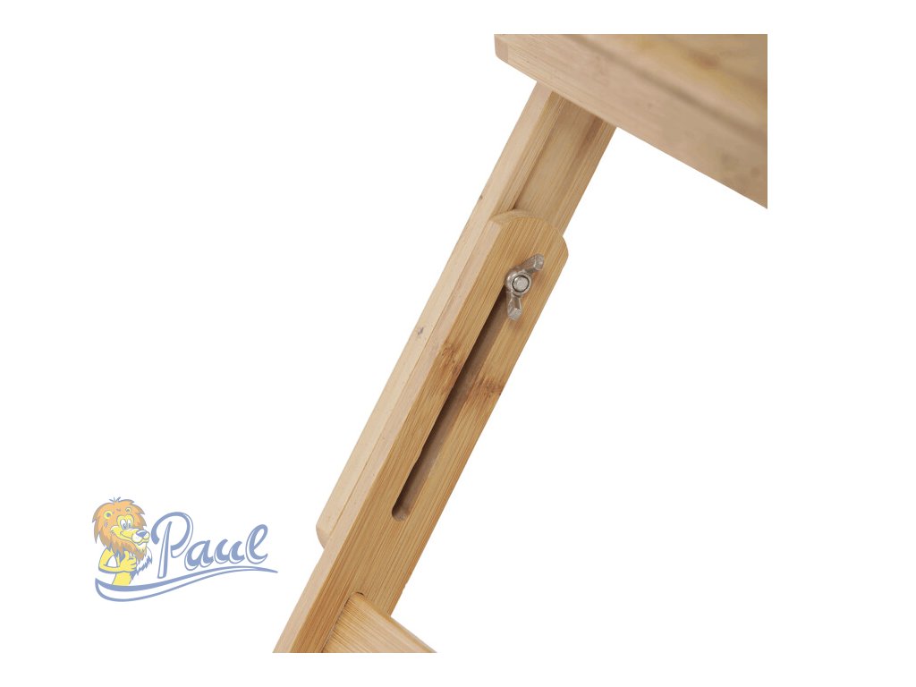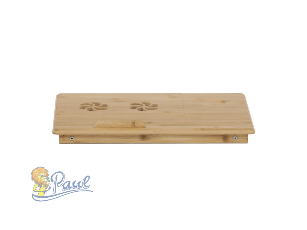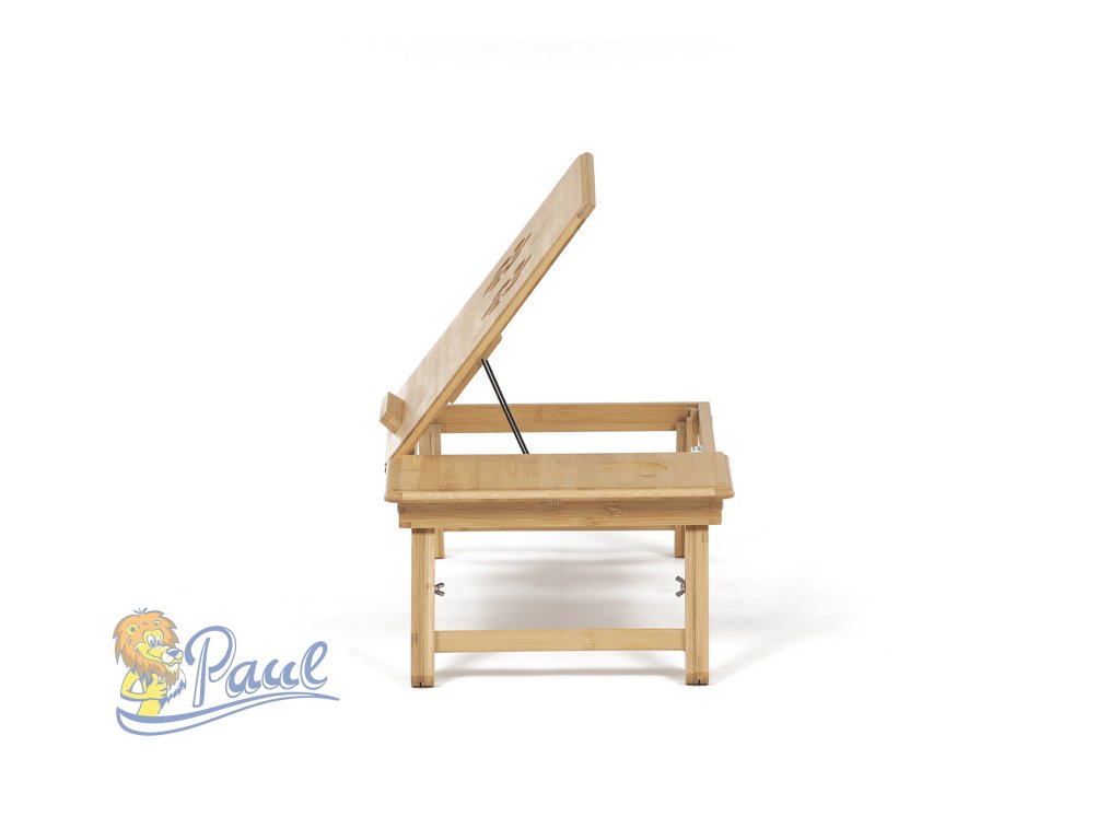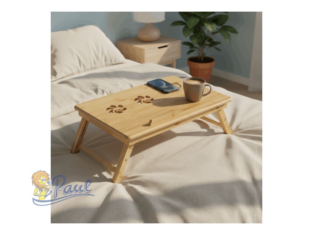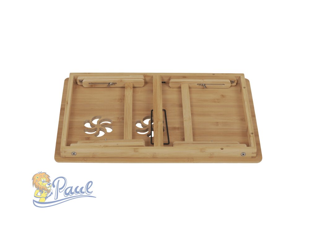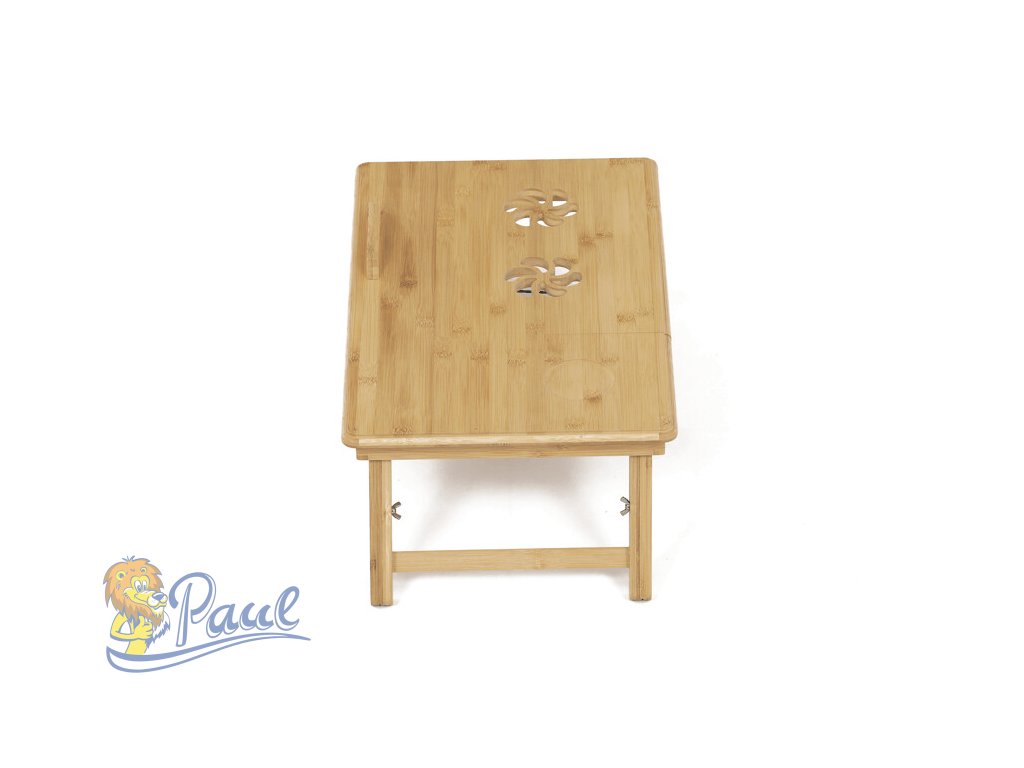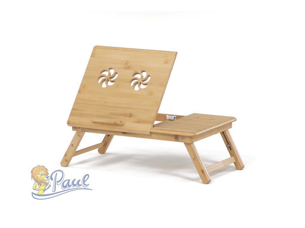 Skládací stolek na notebook z masivního bambusu v přírodním odstínu nabízí praktické a estetické řešení pro práci i odpočinek. Deska stolku je rozdělena na dvě části, přičemž hlavní část je nastavitelná do několika úhlů a opatřená větracími otvory pro lepší chlazení zařízení. Vedlejší plocha slouží jako odkládací prostor například na myš nebo šálek. Pevné nohy z masivního bambusu jsou vybaveny protiskluzovými koncovkami a umožňují snadné skládání pro úsporu místa při skladování či přepravě. Díky kvalitnímu přírodnímu materiálu se stolek snadno udržuje a je navržen pro dlouhou životnost.Doplňkové parametry
