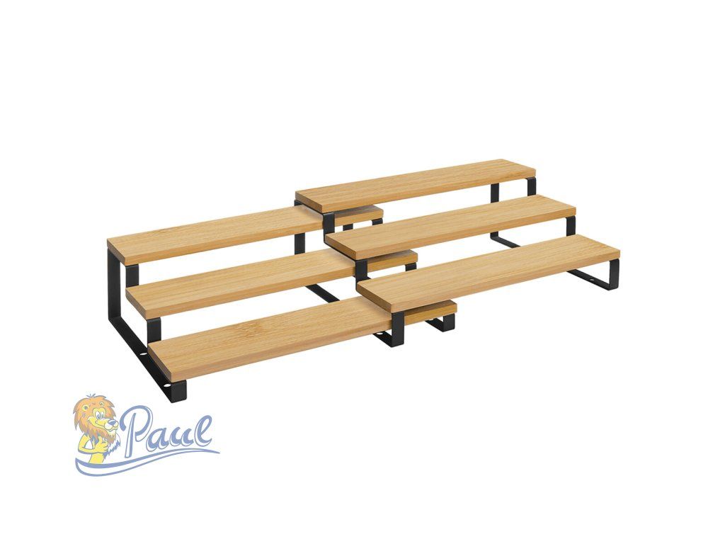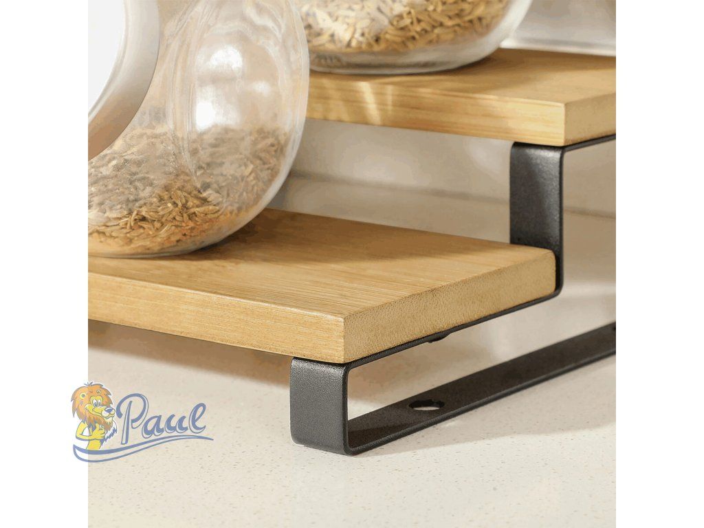 Sada dvou organizérů kombinuje přírodní bambusové police s pevnou černou kovovou základnou, která zajišťuje stabilitu a moderní vzhled. Police jsou uspořádány do tří úrovní, což umožňuje efektivní uspořádání drobných předmětů nebo dekorací. Bambusové desky mají hladký povrch s jemnou texturou, která působí přirozeně a zároveň snadno udržovatelně. Černý kovový rám je navržen tak, aby podporoval nosnost a zároveň dodával industriální nádech. Díky kompaktním rozměrům je sada vhodná pro použití na pracovních stolech, v koupelnách nebo jako praktický doplněk do kuchyně.Doplňkové parametry