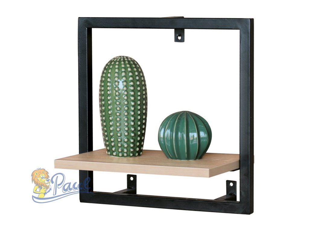 Polička nástěnná 35x20 cm, MDF, dekor dub, kov černý mat