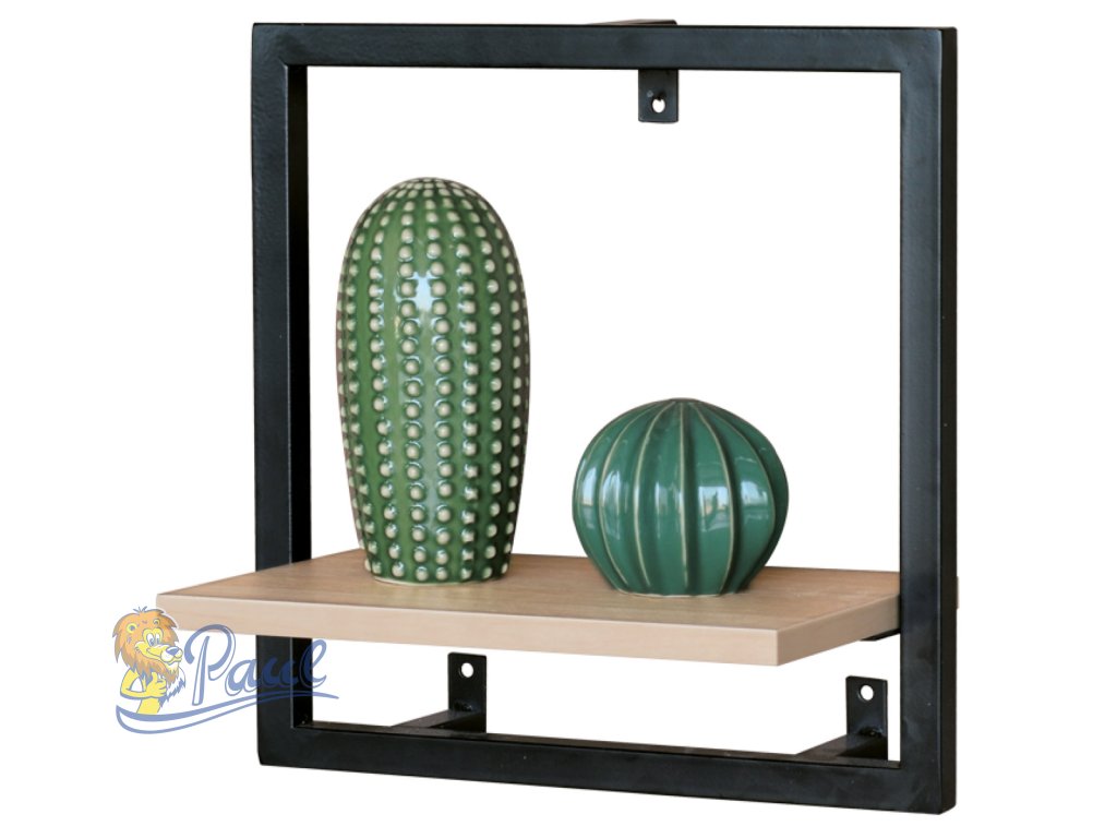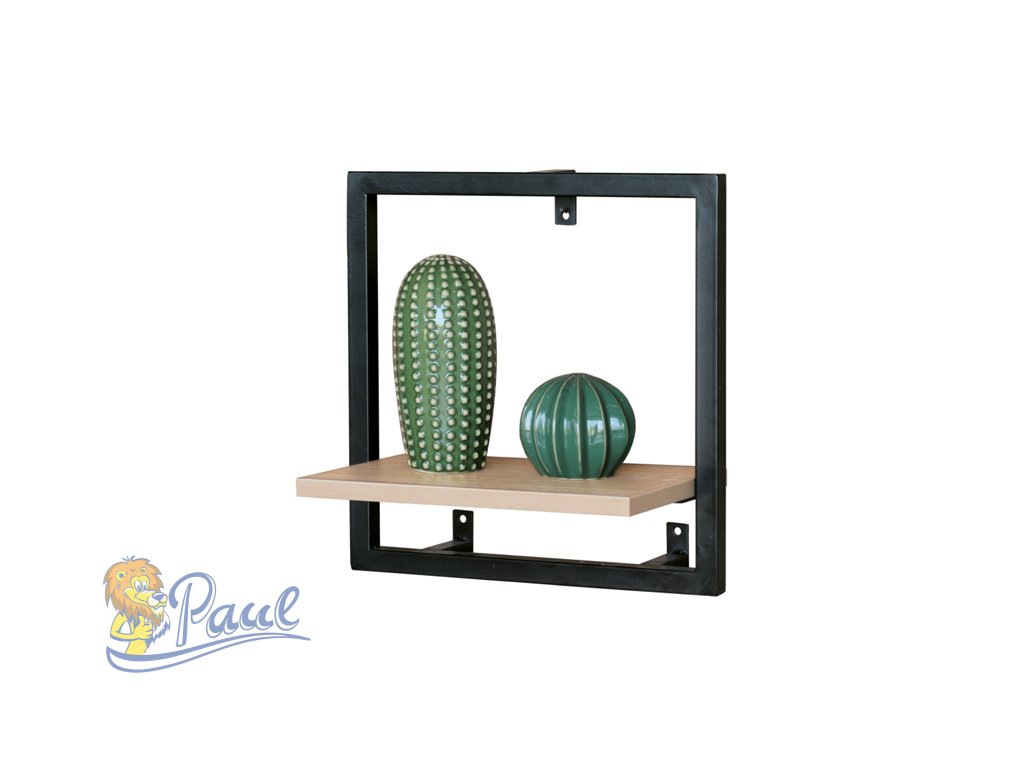 Polička nástěnná 35x20 cm, MDF, dekor dub, kov černý mat
