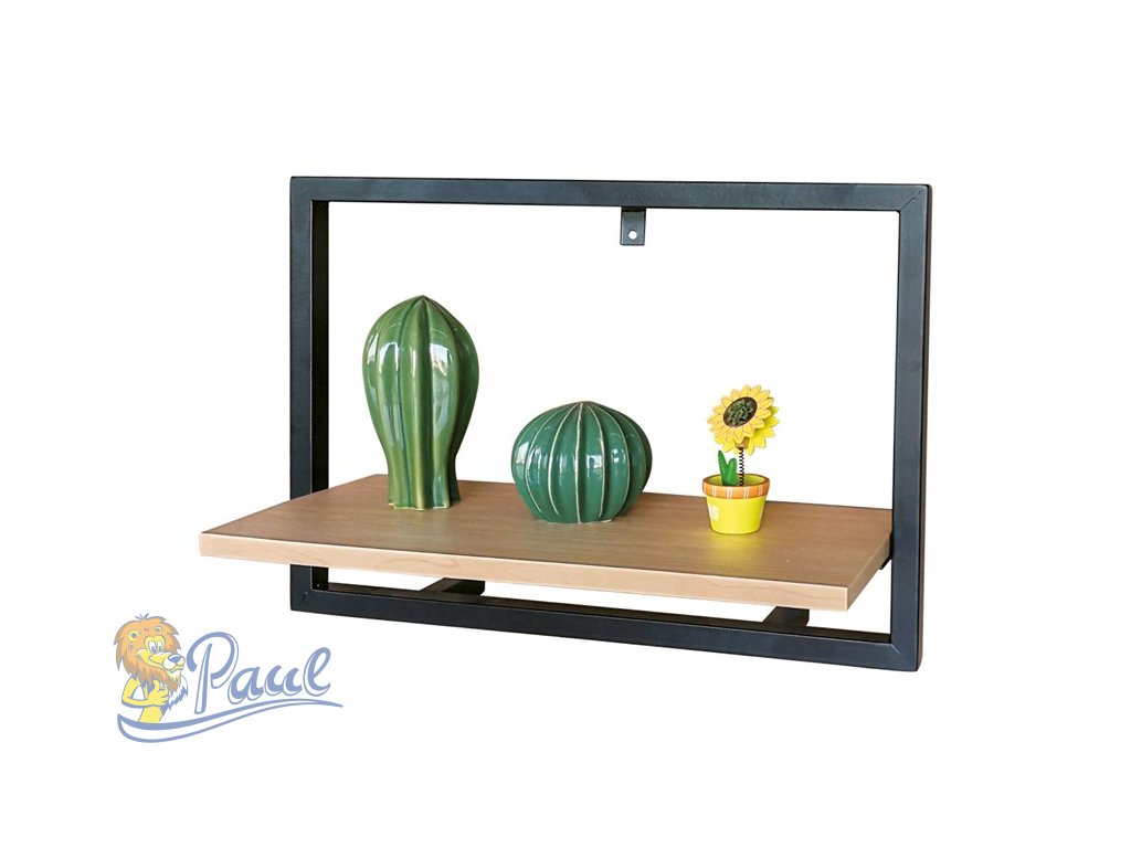 Polička nástěnná 50x20 cm, MDF, dekor dub, kov černý mat