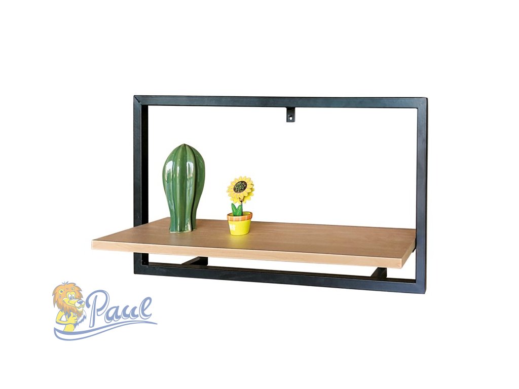 Polička nástěnná 65x20 cm, MDF, dekor dub, kov černý mat