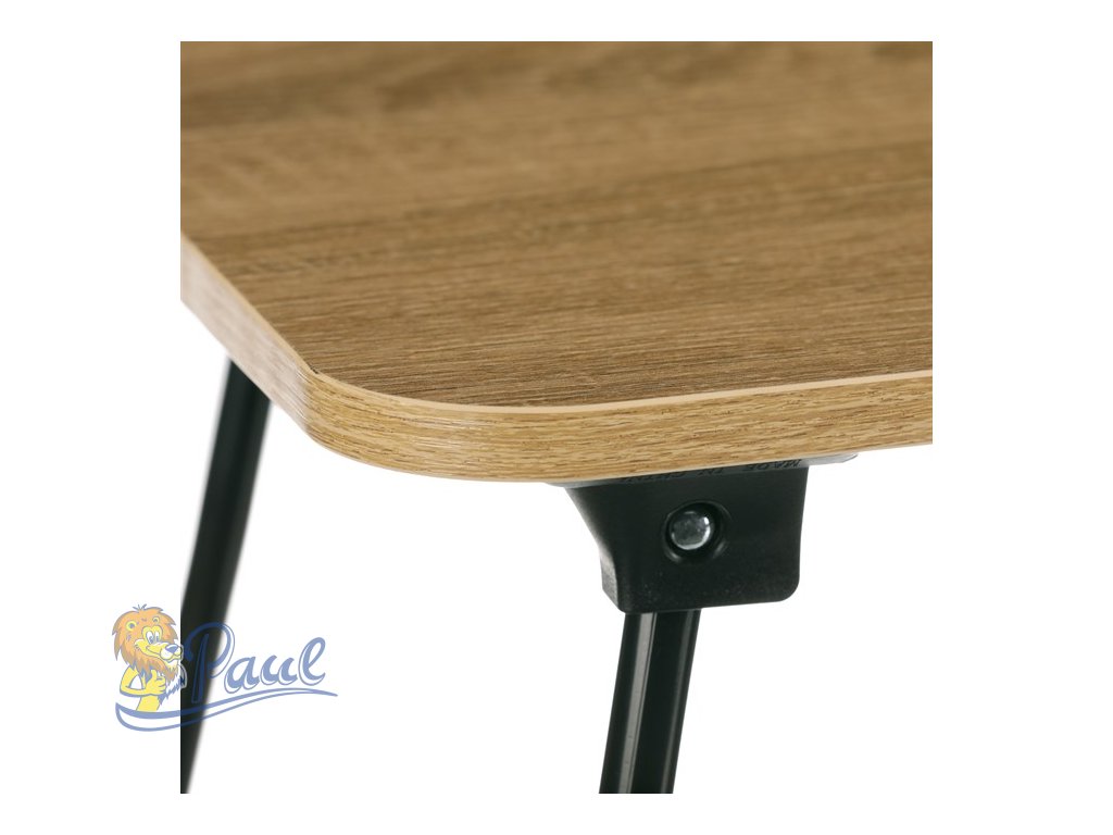 Skládací stolek značky Autronic kombinuje moderní industriální styl s praktickým využitím. Deska z MDF materiálu s dekorem dubu vytváří elegantní vzhled, ideální do obývacích pokojů či pracovních prostor. Skládací kovová podnož a černé nohy dodávají stolku snadnou manipulaci. Díky obdélníkovému tvaru a kompaktním rozměrům je stolek vhodný pro práci s notebookem nebo jako servírovací stolek. Tento stolek se stane praktickým doplňkem každého interiéru.Doplňkové parametry
