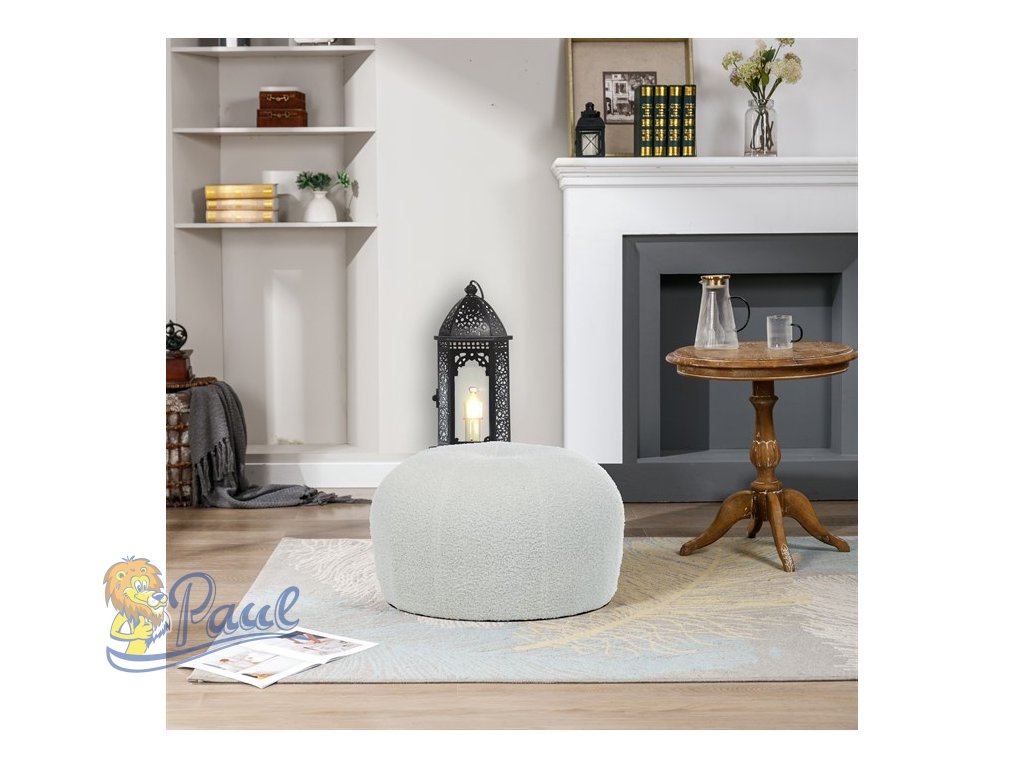 Taburet, bílá Bouclé látka.