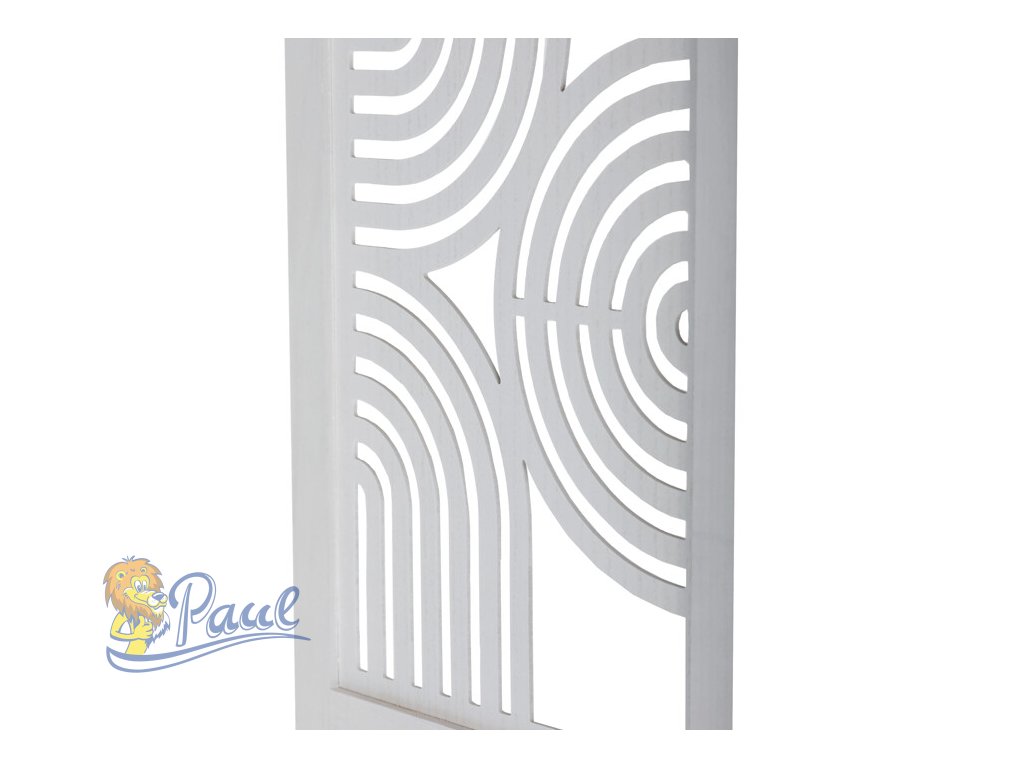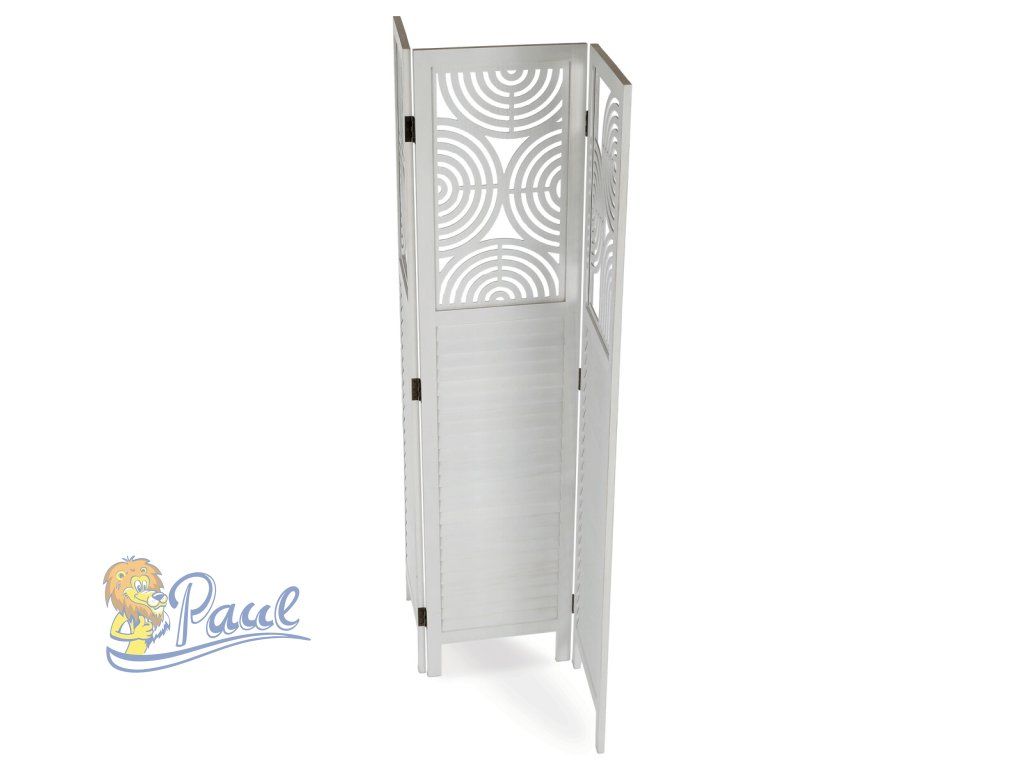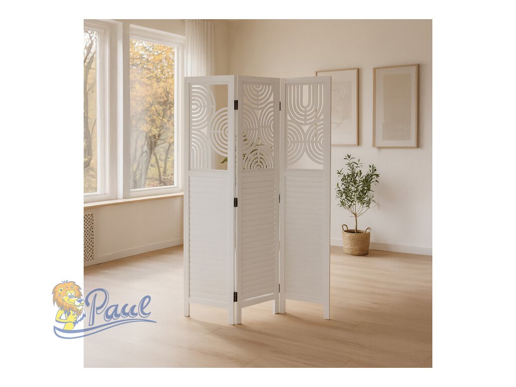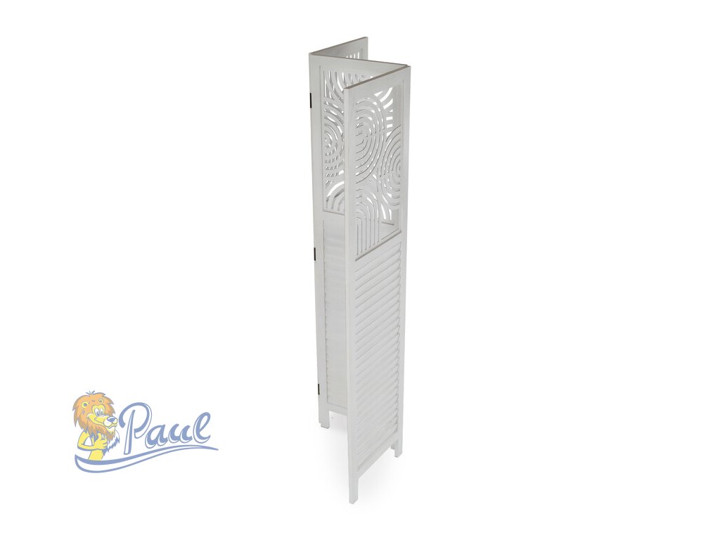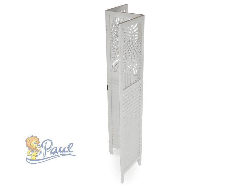 Třípanelový paraván vyrobený z masivního smrkového dřeva v bílé barvě nabízí praktické řešení pro rozdělení prostoru v interiéru. Každý díl je doplněn dekorativními výřezy v horní části, které propouštějí světlo a zároveň zachovávají soukromí. Masivní materiál zajišťuje pevnost a stabilitu, zatímco přírodní textura dřeva dodává výrobku přirozený vzhled. Paraván je vhodný pro použití v obývacích pokojích, ložnicích nebo kancelářích, kde pomáhá vytvořit útulné a funkční prostředí. Díky skládací konstrukci je snadno přemístitelný a skladovatelný.Doplňkové parametry