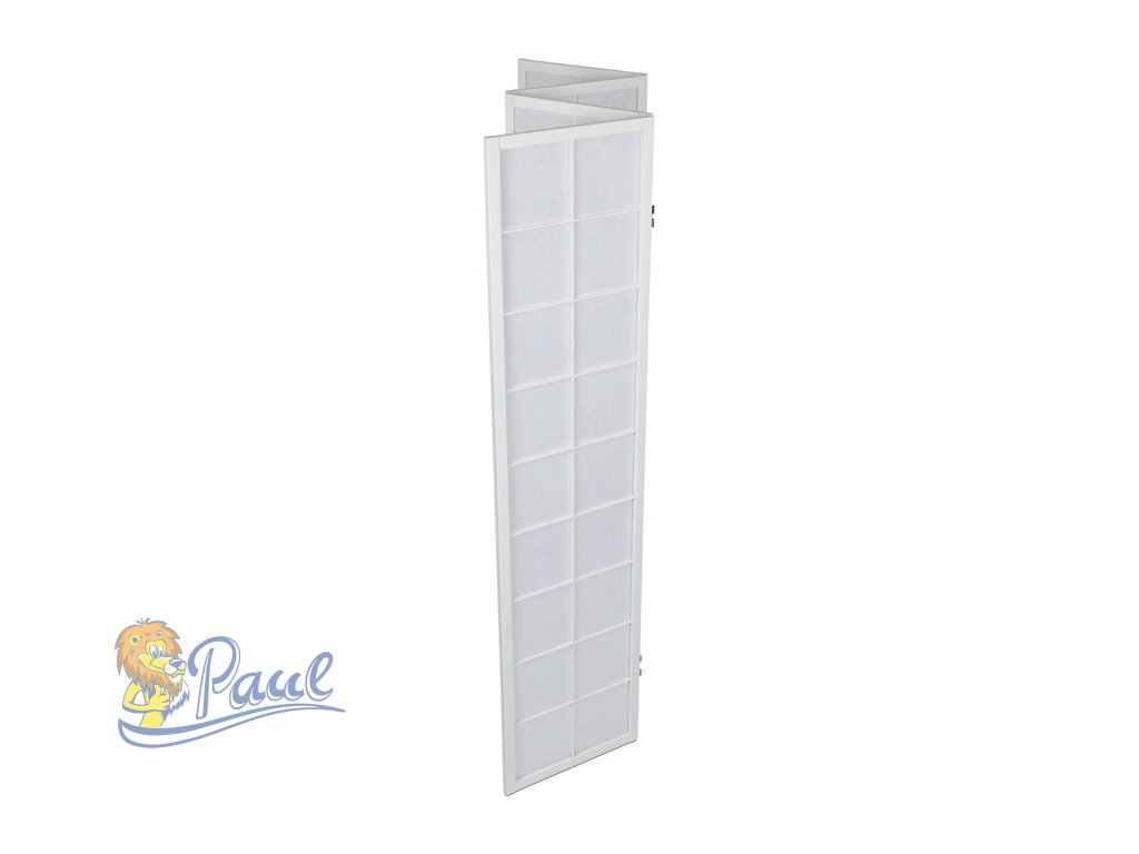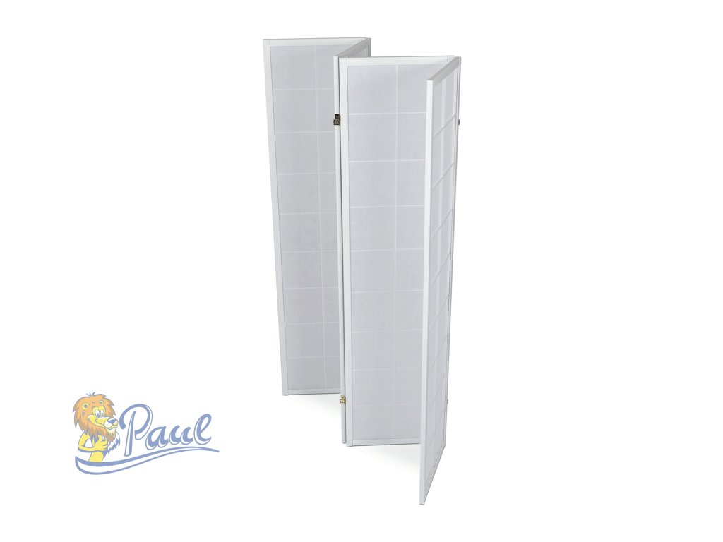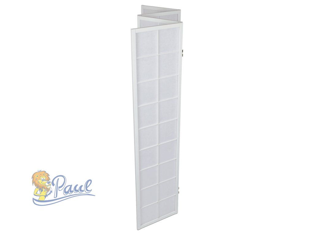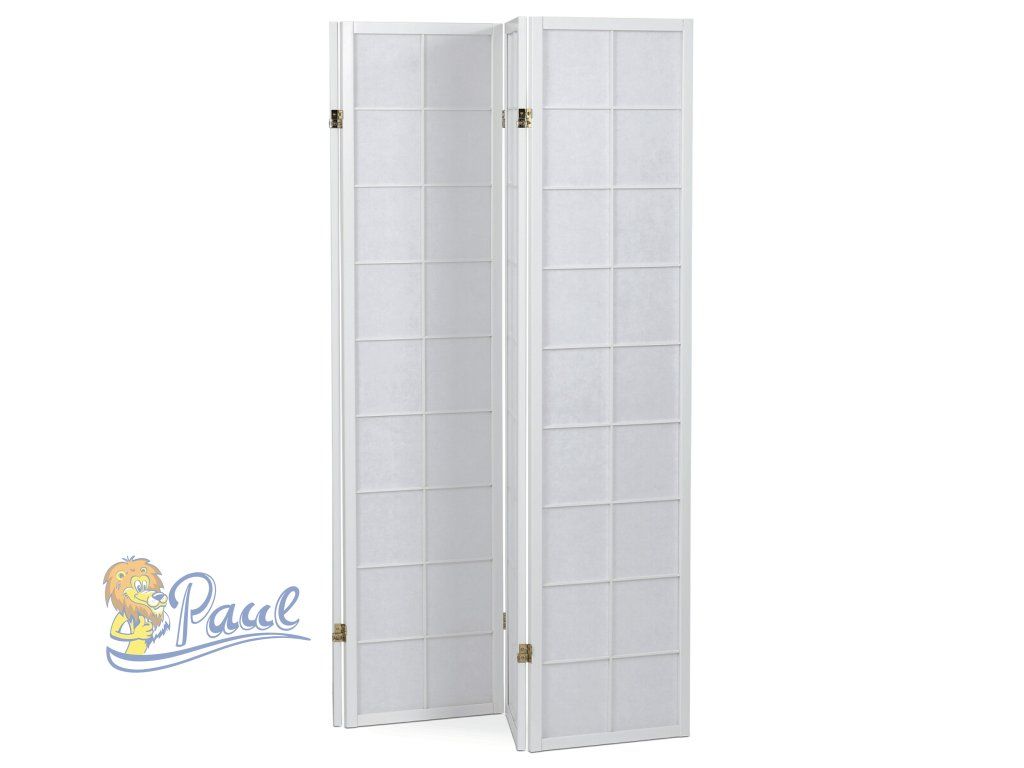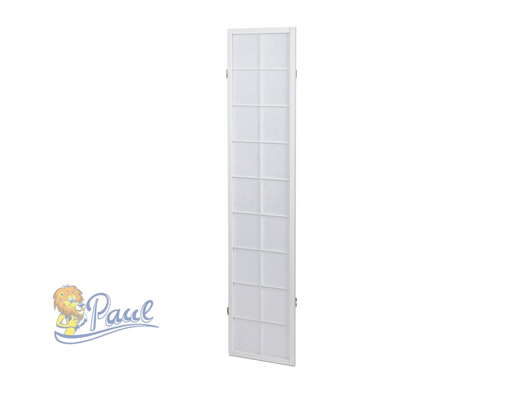 4dílný volně stojící paraván s konstrukcí z masivního smrkového dřeva v bílé barvě a výplní z bílé netkané textilie. Plní nejen funkci okrasnou, ale také praktickou. Lze jej použít jako zástěnu nebo diskrétní i optickou dělící příčku nejen v bytě, ale i v komerčních prostorách. Díky skládací konstrukci a celkové nízké hmotnosti jej lze bez problémů přemísťovat a manipulovat s ním. Kombinace dřeva a netkané textilie působí vzdušným dojmem, stylově lze paraván umístit do jakkoli zařízeného interiéru. V každém si najde zasloužené místo. Výška paravánu je 178 cm, šíře jednoho dílu 43,5 cm, celková plná šíře je 176 cm. Tloušťka stěny jsou 2 cm. Stěny paravánu jsou k sobě připevněny kovovými pomosazenými panty. Celková hmotnost je 6,5 kg.Doplňkové parametry