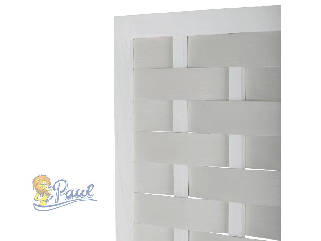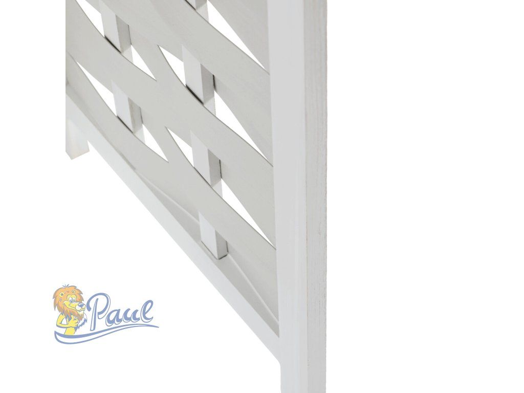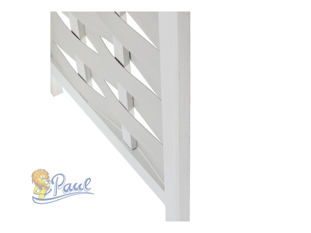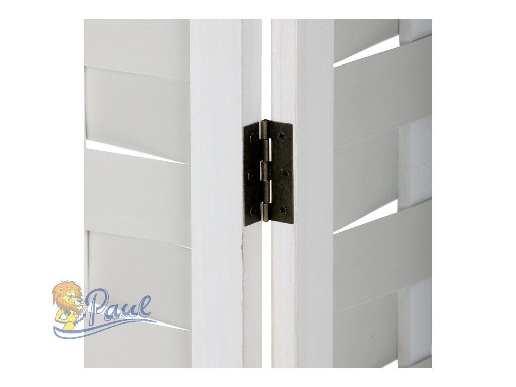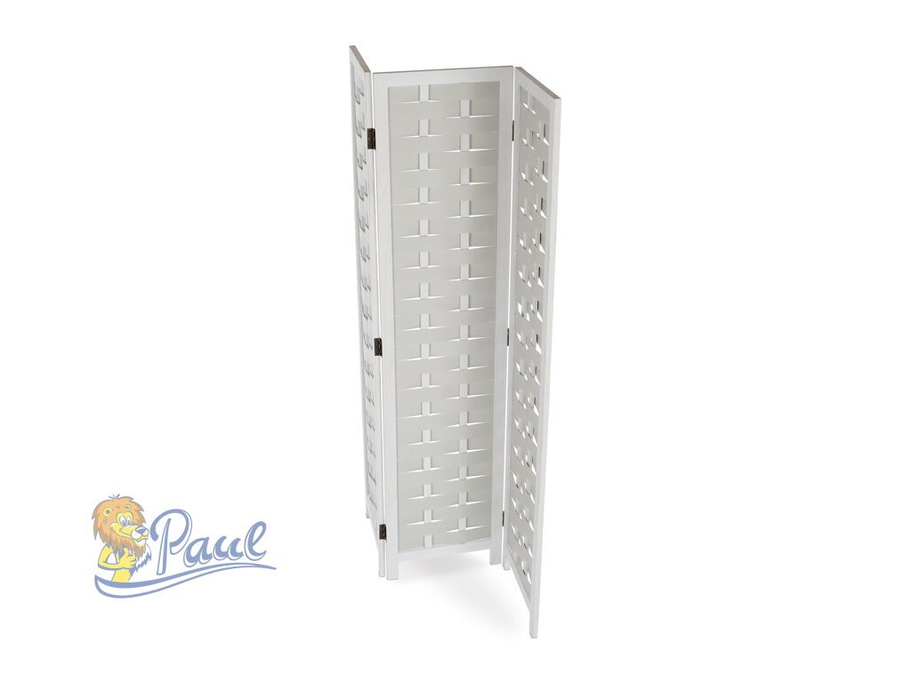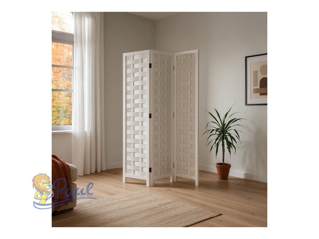 Třídílný paraván vyrobený z masivního smrkového dřeva v bílé barvě nabízí praktické řešení pro rozdělení prostoru i dekorativní doplněk interiéru. Každá z částí je spojena kovovými panty, které umožňují snadné skládání a nastavení úhlu podle potřeby. Povrchová úprava zdůrazňuje přirozenou strukturu dřeva a zároveň usnadňuje údržbu. Paraván je stabilní a díky masivnímu provedení navržen pro dlouhou životnost. Je vhodný do různých typů interiérů, kde přispívá k vytvoření soukromí nebo optickému oddělení zón. Rozměr jednoho dílu 40x171cm.Doplňkové parametry