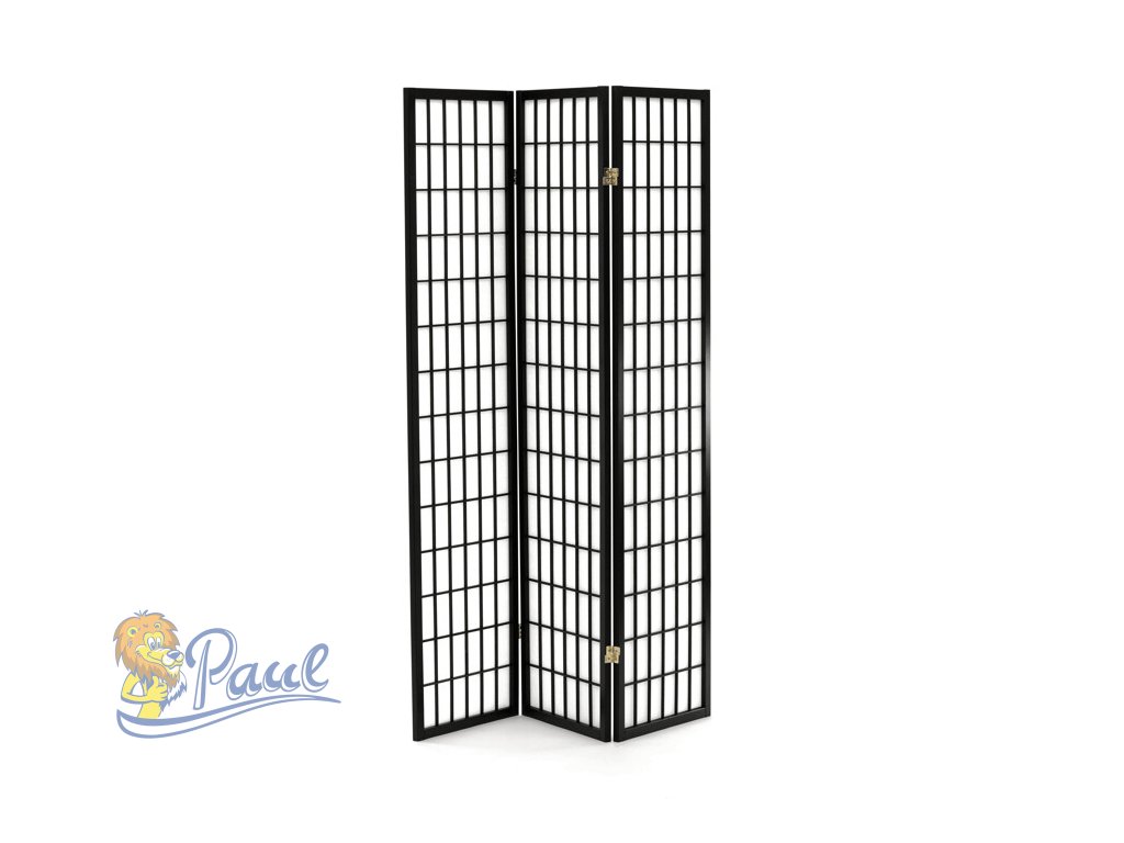 Třídílný paraván je vyroben z masivního smrkového dřeva s povrchovou úpravou v černém matném laku, který zajišťuje kvalitní zpracování a dlouhou životnost. Výplň tvoří bílá netkaná textilie, jež propouští světlo a zároveň poskytuje dostatečné soukromí. Díky třem otočným dílům umožňuje flexibilní nastavení úhlu a snadné přizpůsobení prostoru. Paraván je vhodný pro oddělení místností, vytvoření soukromých zón nebo jako dekorativní prvek interiéru. Jeho rozměry a pevná konstrukce zaručují stabilitu při použití v různých typech prostor.Doplňkové parametry