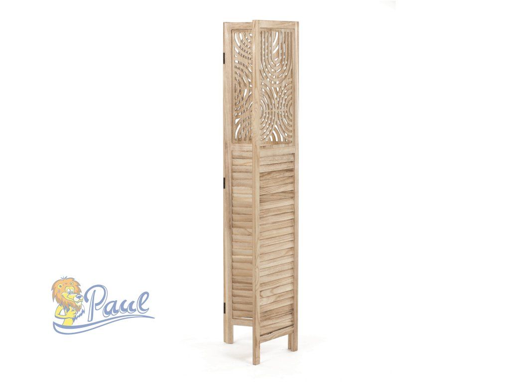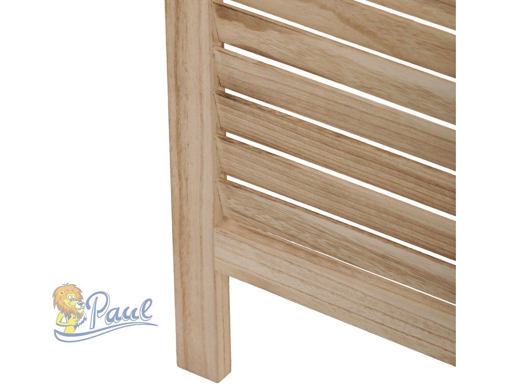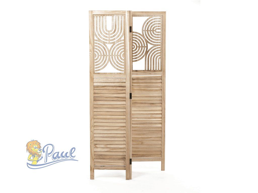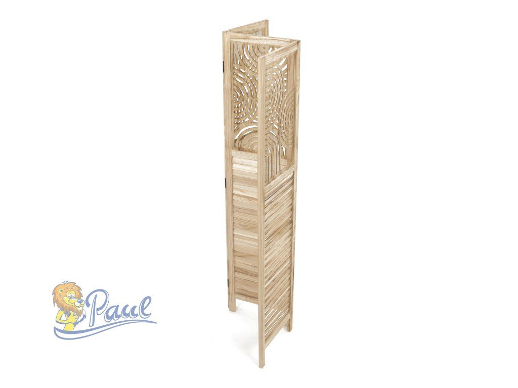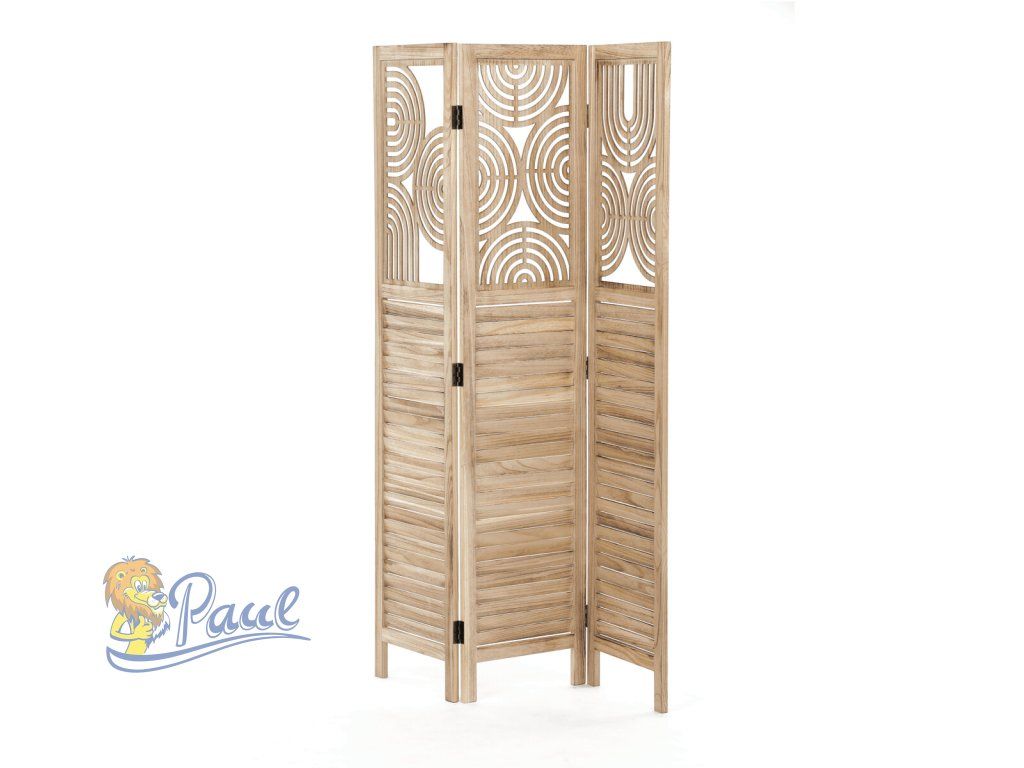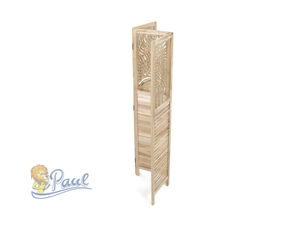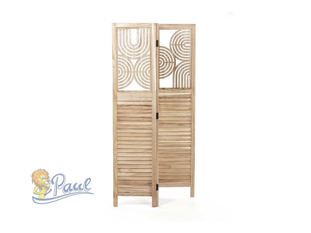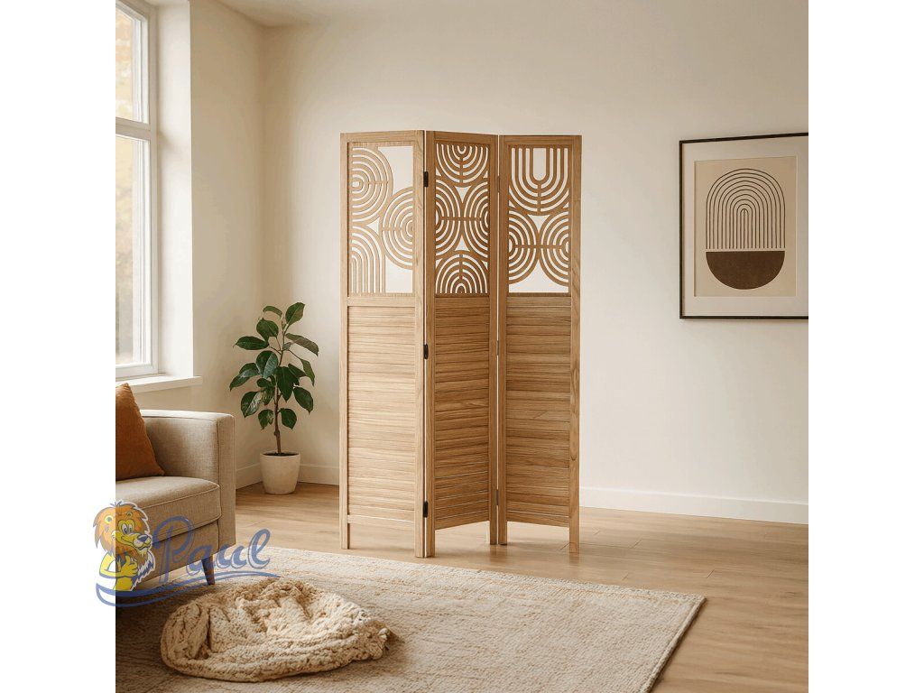 Třídílný dřevěný paraván z masivu smrku v přírodním odstínu kombinuje pevné provedení s dekorativní perforací horní části, která vytváří zajímavý vizuální efekt. Každá část je spojena kovovými panty umožňujícími flexibilní nastavení úhlu a snadné přenášení či skladování. Paraván slouží jako praktický prvek pro rozdělení prostoru nebo zvýšení soukromí v interiéru, přičemž přírodní dřevěný dekor přináší do místnosti teplý a přirozený vzhled. Povrch je upraven tak, aby materiál byl snadno udržovatelný a odolný vůči běžnému opotřebení. Rozměry a konstrukce zajišťují stabilitu a dlouhou životnost produktu.Doplňkové parametry