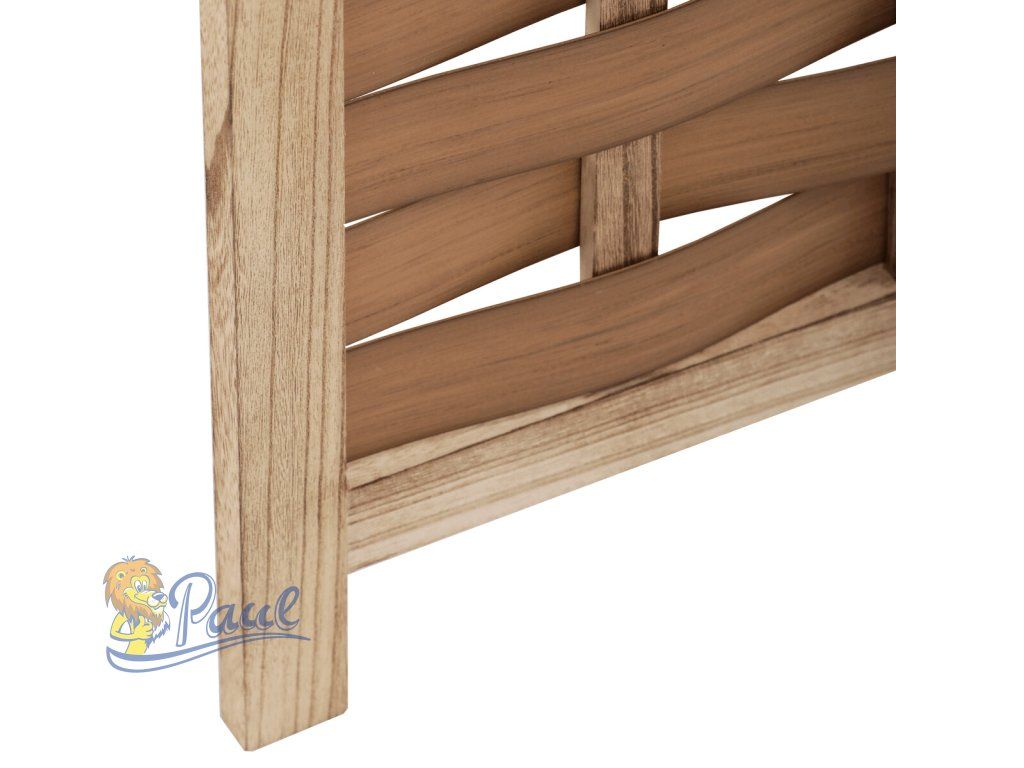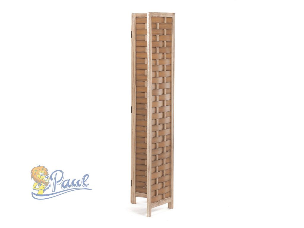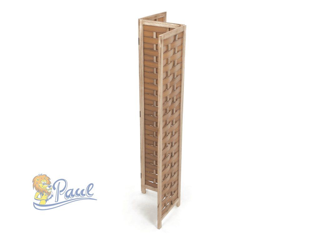 Třídílný paraván vyrobený z masivního smrkového dřeva v přírodním odstínu nabízí praktické řešení pro rozdělení prostoru či vytvoření soukromí. Jeho pevné rámy jsou doplněny propletenými PVC pásky, které vytvářejí zajímavý vzor a zároveň propouštějí světlo. Díky skládací konstrukci s kovovými panty je možné paraván snadno přemístit a přizpůsobit podle potřeby. Přírodní povrchová úprava zdůrazňuje texturu dřeva a umožňuje snadnou údržbu. Rozměry jednotlivých dílů jsou navrženy tak, aby paraván stabilně stál a zároveň byl dostatečně lehký pro manipulaci. Rozměr jednoho dílu 40x171cm.Doplňkové parametry