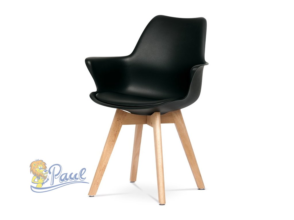 Židle jídelní, černá plastová skořepina, sedák ekokůže, nohy masiv přírodní buk