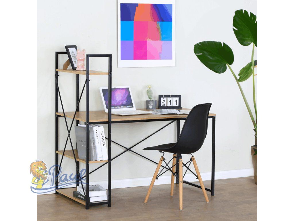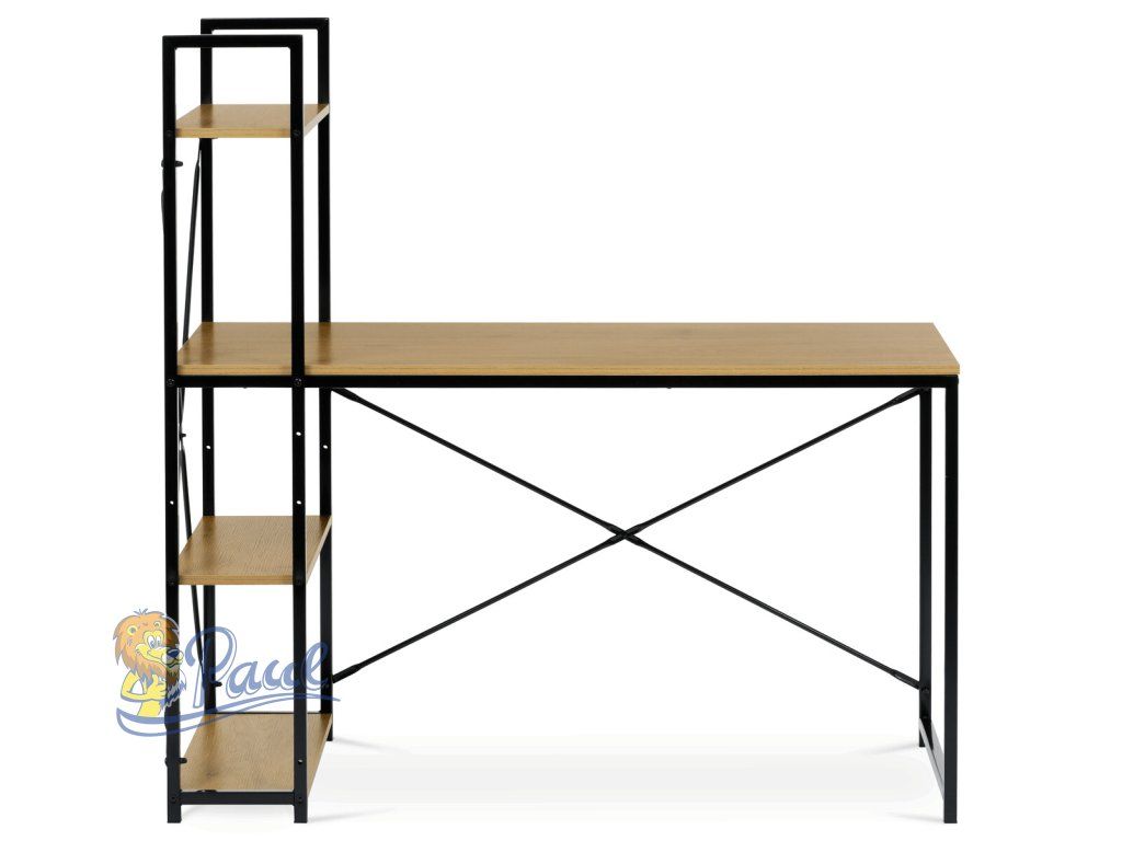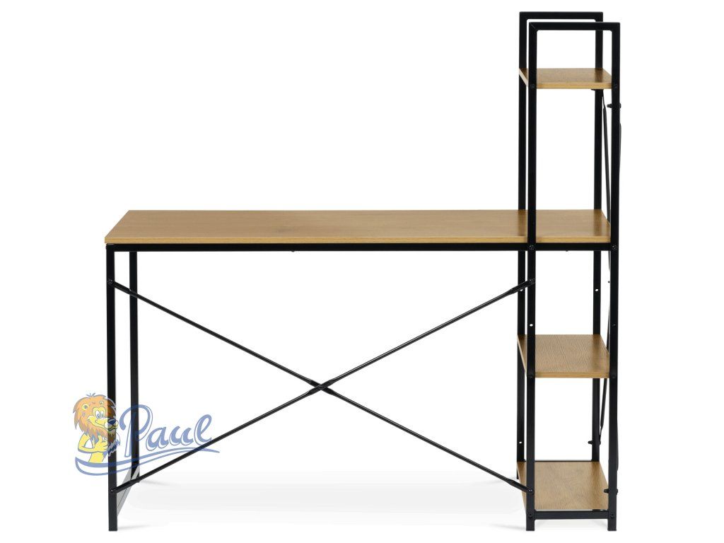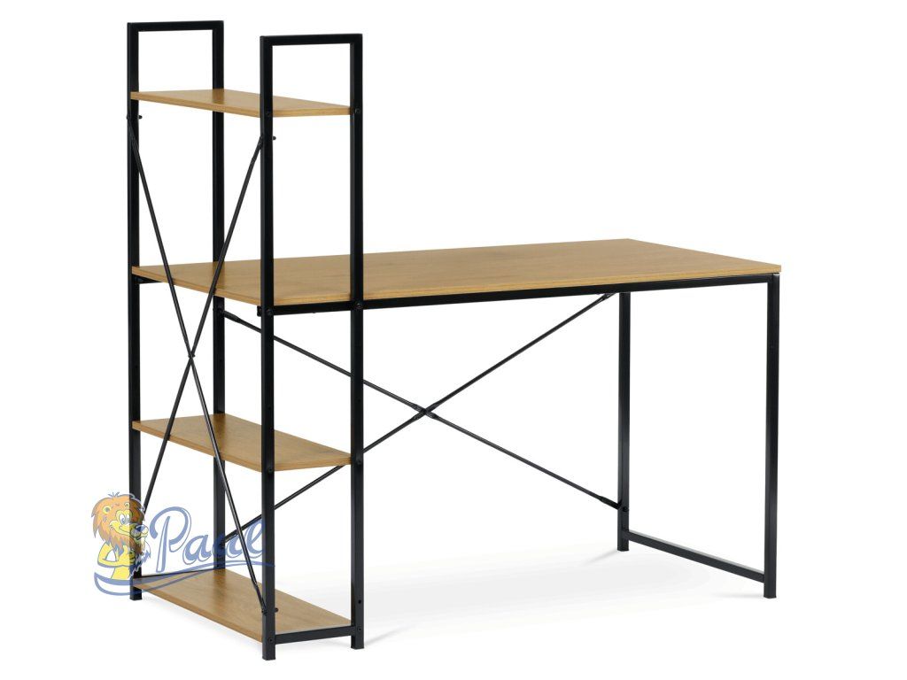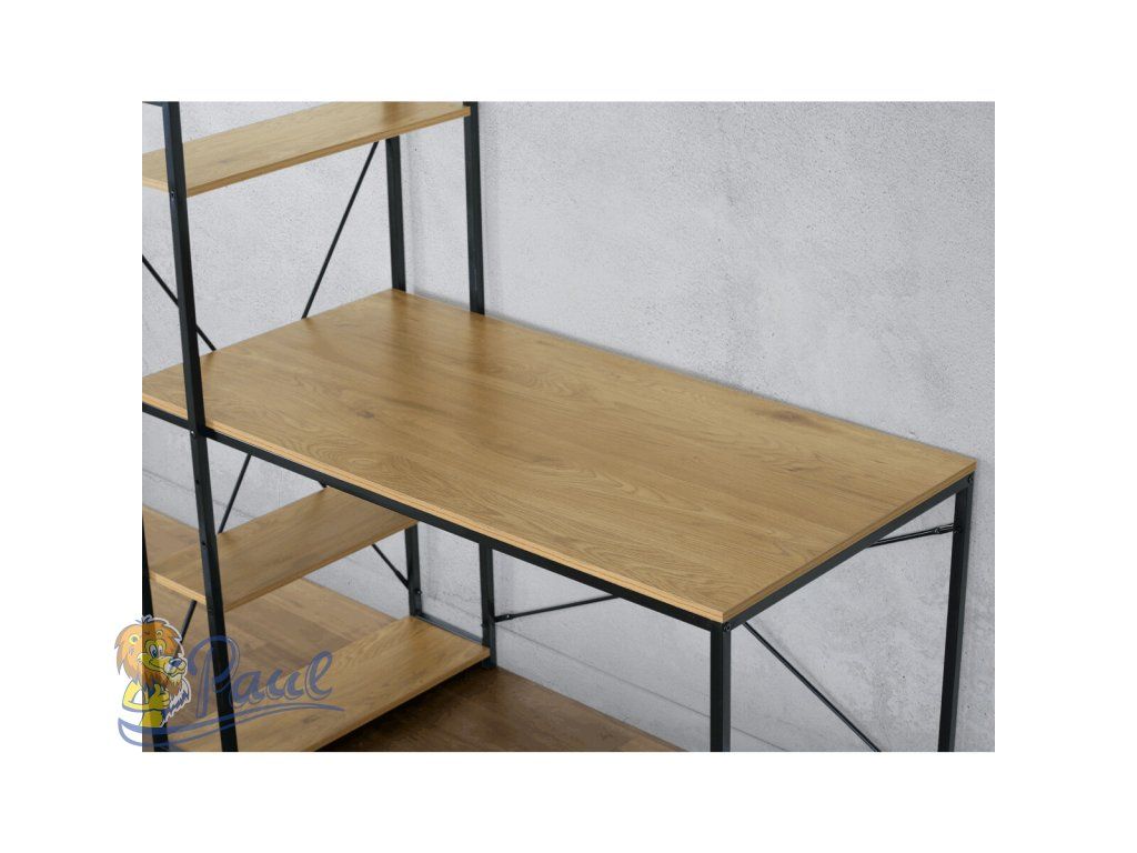 Stůl pracovní s regálem, MDF, dekor dub, černý kov