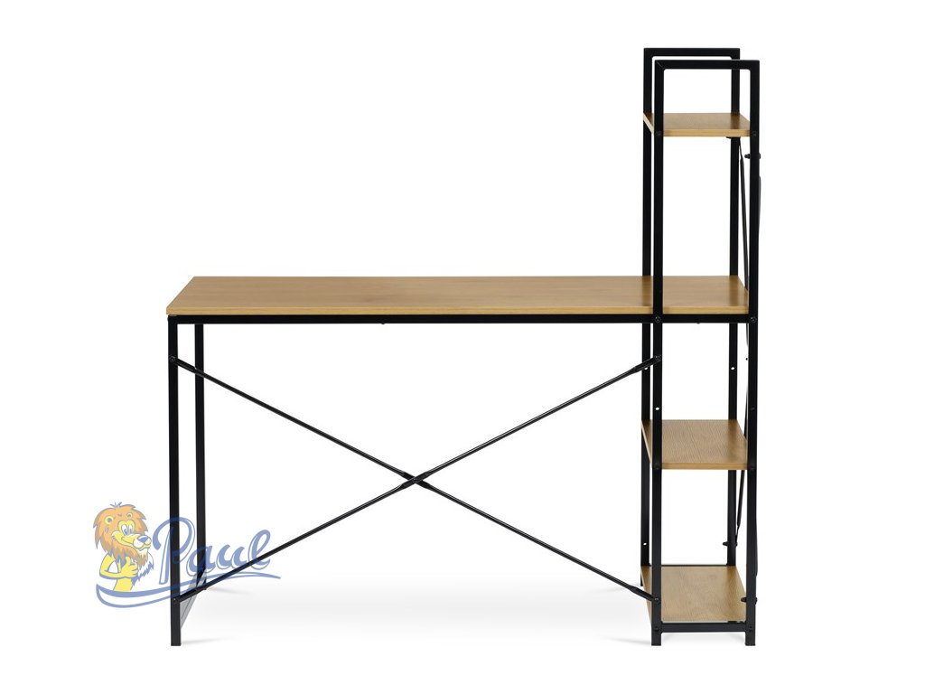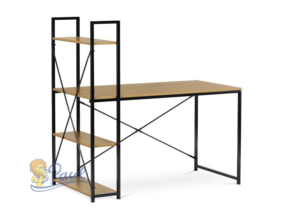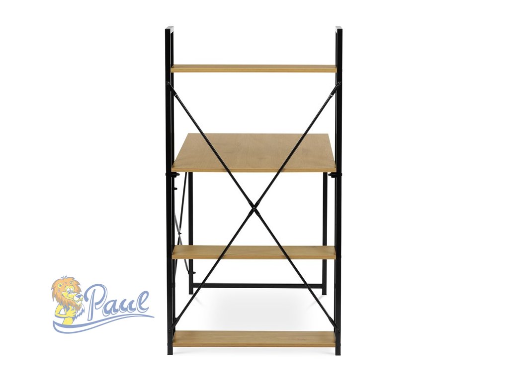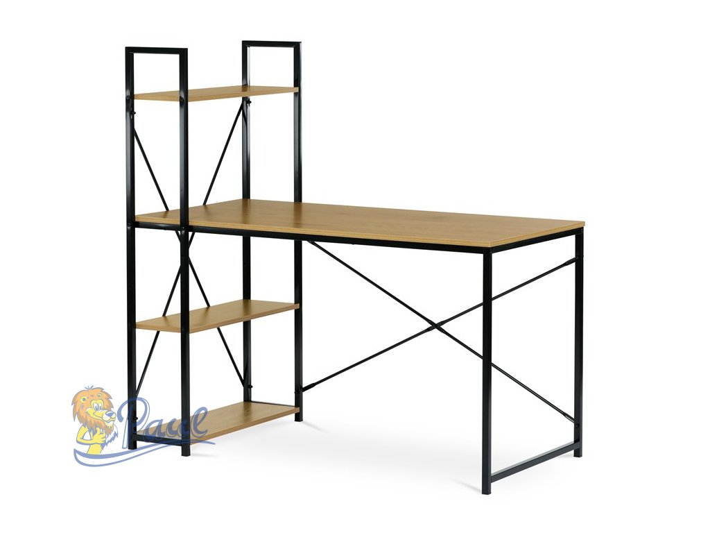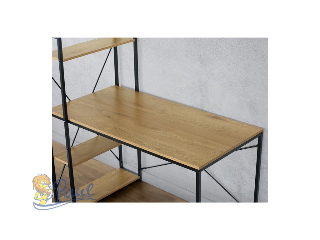Stůl pracovní s regálem, MDF, dekor dub, černý kov