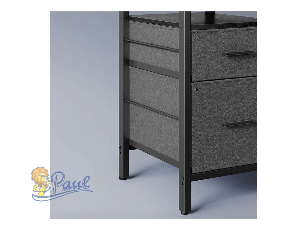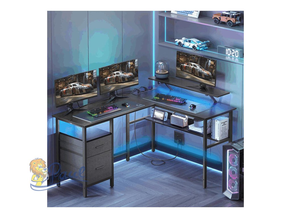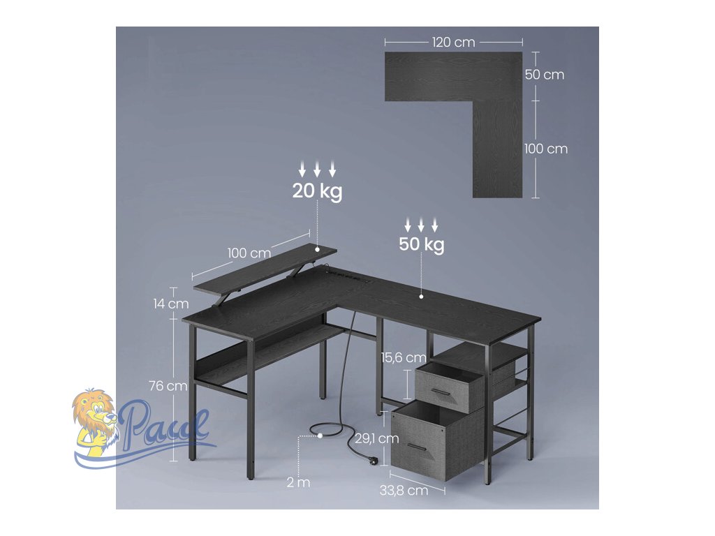 Rohový PC stůl APC-E1395 BK v černém provedení nabízí praktické řešení pro efektivní uspořádání pracovního prostoru. Deska stolu je vyrobena z MDF s černým dekorem, který je snadno udržovatelný a odolný vůči běžnému opotřebení. Stabilní kovové nohy zajišťují pevnou oporu a dlouhou životnost. Součástí stolu jsou dvě látkové zásuvky poskytující dostatek úložného prostoru pro dokumenty či kancelářské potřeby, a také otevřená police pod deskou pro další organizaci. Integrované elektrické zásuvky a USB porty umožňují pohodlné připojení elektroniky přímo u pracovního místa, což zvyšuje komfort a efektivitu práce.Doplňkové parametry
